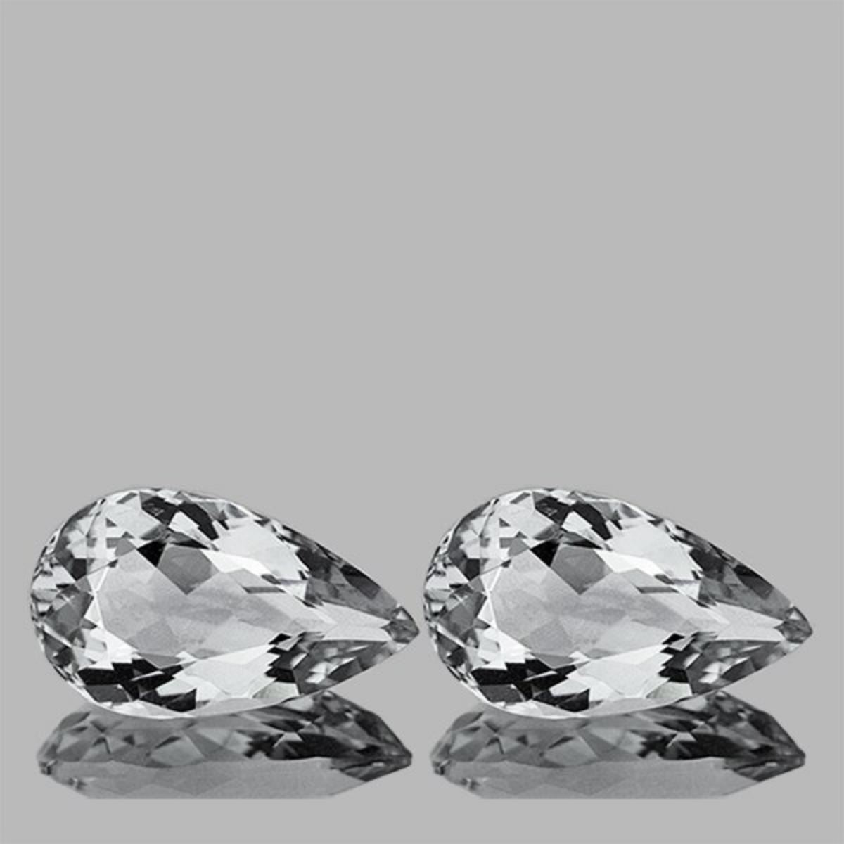 Natural Aquamarine; WEIGHT : 4.88 cts; SHAPE : Pear; SIZE ( L x W x D ) : 13.00 x 8.00 mm; QUANTITY : 2 pieces (Perfect Matching Pair) COLOR : Diamond White ; CLARITY : Flawless-VVS1; ORIGIN : Africa; HARDNESS : 7; LUSTER : Brilliant Luster!!! TREATMENT : UNHeated 100% Natural;