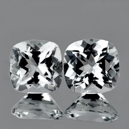 Natural Aquamarine WEIGHT : 2.01 cts SHAPE : Cushion SIZE ( L x W x D ) : 6.50 mm QUANTITY : 2 pieces (Perfect Matching Pair) COLOR : Diamond White CLARITY : Flawless-VVS1 ORIGIN : Africa HARDNESS : 8 LUSTER : Brilliant AAA Luster!! TREATMENT : UNHeated 100% Natural