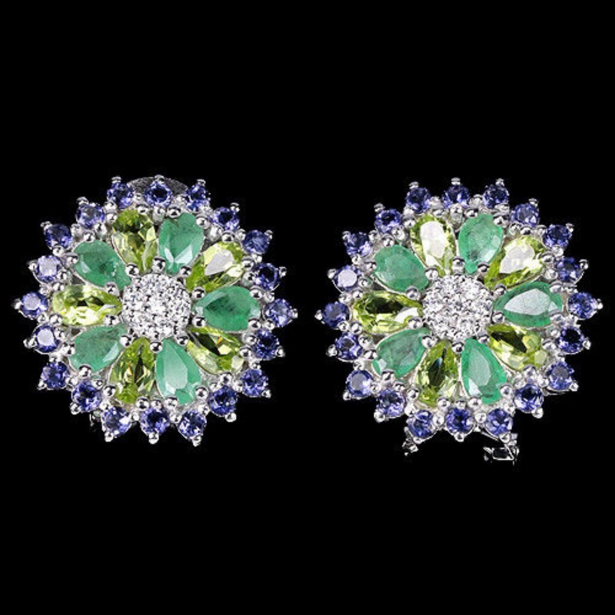 Natural EMERALD PERIDOT TANZANITE Earrings