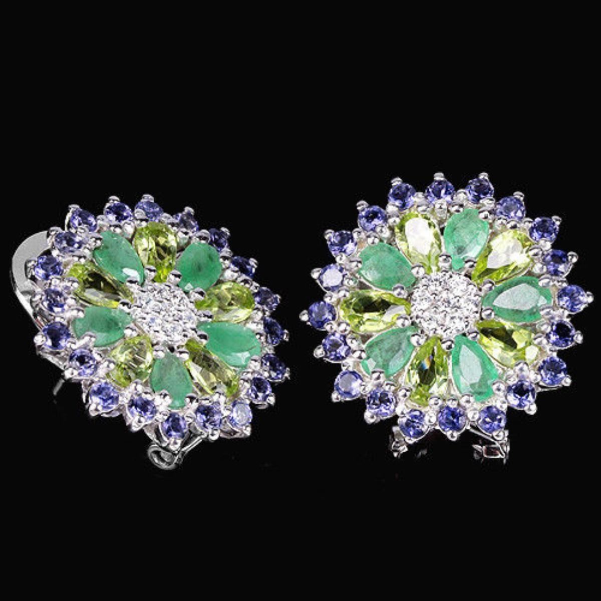 GENUINE EMERALD PERIDOT TANZANITE CZ 925 SILVER EARRING 14K WHITE GOLD COATING; STONE SHAPEMIXED SHAPESTONE DIMENSION5 X 3 MM. & 2.5 MM.ITEM WEIGHT8.3 GRAMCOLORMULTI COLORCLARITYIF, VVS&TRANSLUCENTLUSTERALLURINGTREATMENTUNHEATEDORIGIN OF STONEAFRICA, ASIA & TANZANIAHARDNESS6.5 - 8.0;FACE OF EARRING 21 X 21 MM. WHITE CUBIC ZIRCONIA 1.2 MM.