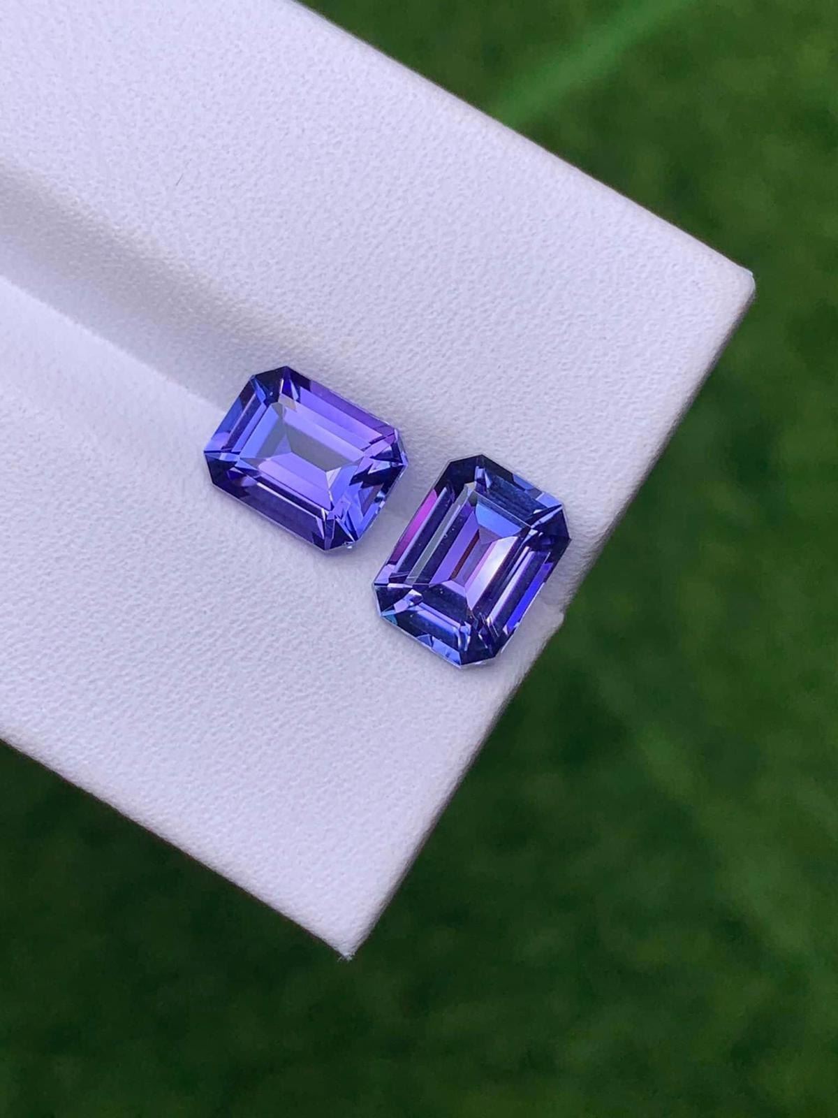 Natural Tanzanite Pair 3.58 Carats - VVS......Approx size - 7.64 MM; Shape - Emerald cut; Top Color; Gently heated; Origin - Tanzania