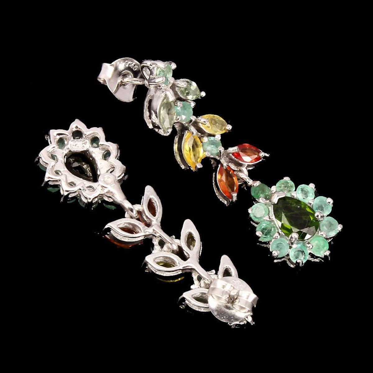 925 STERLING SILVER;PLATE14K WHITE GOLD;MAIN STONE-CHROME DIOPSIDE;OTHER GEMS-EMERALD,SAPPHIRE;TOTAL WEIGHT-41.02 CT (TOTAL WEIGHT OF SILVER + STONE)DIMENSION* STONE 2.0 TO 7.0 X 5.0 MM. * FACE EARRINGS 37.0 X 11.0 MM.MAIN STONE SHAPEPEAR CUTMAIN STONE COLORTOP RICH GREENCLARITY/GRADEIF TO VVSLUSTERGORGEOUSTREATMENTUNHEATEDORIGINRUSSIAHARDNESS5.0 - 9.0