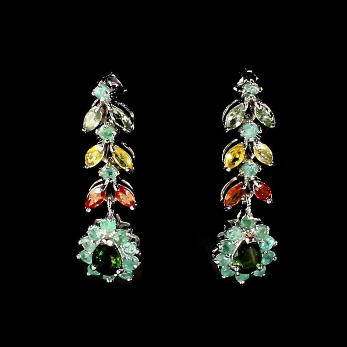 925 STERLING SILVER;PLATE14K WHITE GOLD;MAIN STONE-CHROME DIOPSIDE;OTHER GEMS-EMERALD,SAPPHIRE;TOTAL WEIGHT-41.02 CT (TOTAL WEIGHT OF SILVER + STONE)DIMENSION* STONE 2.0 TO 7.0 X 5.0 MM. * FACE EARRINGS 37.0 X 11.0 MM.MAIN STONE SHAPEPEAR CUTMAIN STONE COLORTOP RICH GREENCLARITY/GRADEIF TO VVSLUSTERGORGEOUSTREATMENTUNHEATEDORIGINRUSSIAHARDNESS5.0 - 9.0