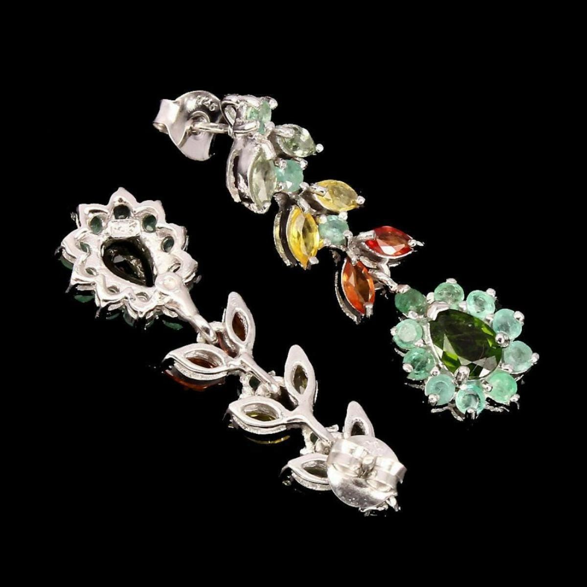 925 STERLING SILVER;PLATE14K WHITE GOLD;MAIN STONE-CHROME DIOPSIDE;OTHER GEMS-EMERALD,SAPPHIRE;TOTAL WEIGHT-41.02 CT (TOTAL WEIGHT OF SILVER + STONE)DIMENSION* STONE 2.0 TO 7.0 X 5.0 MM. * FACE EARRINGS 37.0 X 11.0 MM.MAIN STONE SHAPEPEAR CUTMAIN STONE COLORTOP RICH GREENCLARITY/GRADEIF TO VVSLUSTERGORGEOUSTREATMENTUNHEATEDORIGINRUSSIAHARDNESS5.0 - 9.0