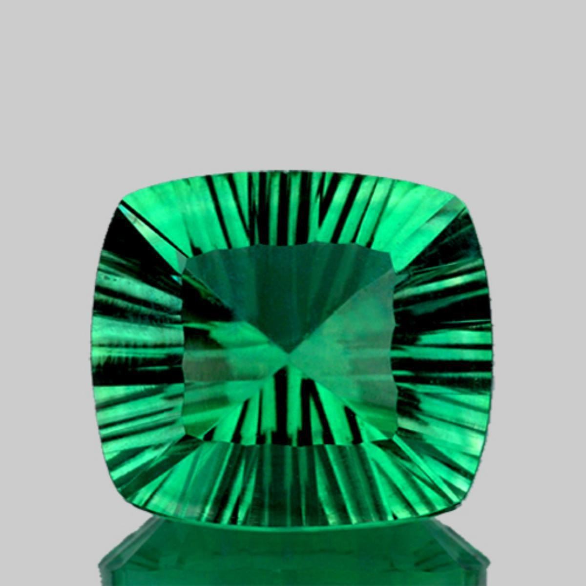 Natural Fluorite WEIGHT : 21.20 cts; SHAPE : Cushion (Concave Cut) SIZE ( L x W x D ) : 17.61 x 16.48 x 11.23 mm; QUANTITY : 1 piece COLOR : Emerald Green Best AAA Color; CLARITY : Flawless-VVS1 AAA Grade; ORIGIN : Brazil; HARDNESS : 4-5; LUSTER : Excellent!!!Fluorite is made up of calcium fluoride and has a transparent or translucent appearance. Sometimes it can be a colorless crystal, but other times it can also be purple, blue, green, yellow, or pink, or other combinations of these colors.Fluorite is sometimes called fluorspar. The name is derived from the Latin word ‘fluo’, meaning to flow.It’s one of the most sought after and most collectible crystals in the world because of its luminosity and beauty. It has a soft and glassy appearance that is often very vibrant.........On a psychic level, Fluorite is a very protective crystal. It will help you know when there are external forces trying to control or manipulate you, and it can effectively shut down any kind of mental or psychic manipulation.This is a particularly useful crystal to have at work when you are surrounded by hostile or opposing forces. It’s also a powerful crystal to ward off negative energies that threaten your personal relationships.Fluorite can get rid of any electromagnetic fog that can attract or retain negative energies and make you feel psychically, emotionally, or mentally lethargic.It can purify your body and eliminate anything that’s causing it not to function perfectly. It can bring you calmness and relaxation, and it can relieve all your tensions and anxieties.....Fluorite can help you have more structure in your everyday life, making you physically, emotionally, and mentally prepared to overcome both small and big challenges.This crystal can help you declutter and get rid of the things, or even people, that are no longer healthy for you. It can support you in breaking away from rigid patterns of behavior or old ways of thinking.It has the ability to increase your intuition. It can increase your sense of confidence and strengthen your know-hows when it comes to life.If you’re feeling lost, confused, or empty, the uplifting energies of this crystal will reassure you that everything’s going to be alright.