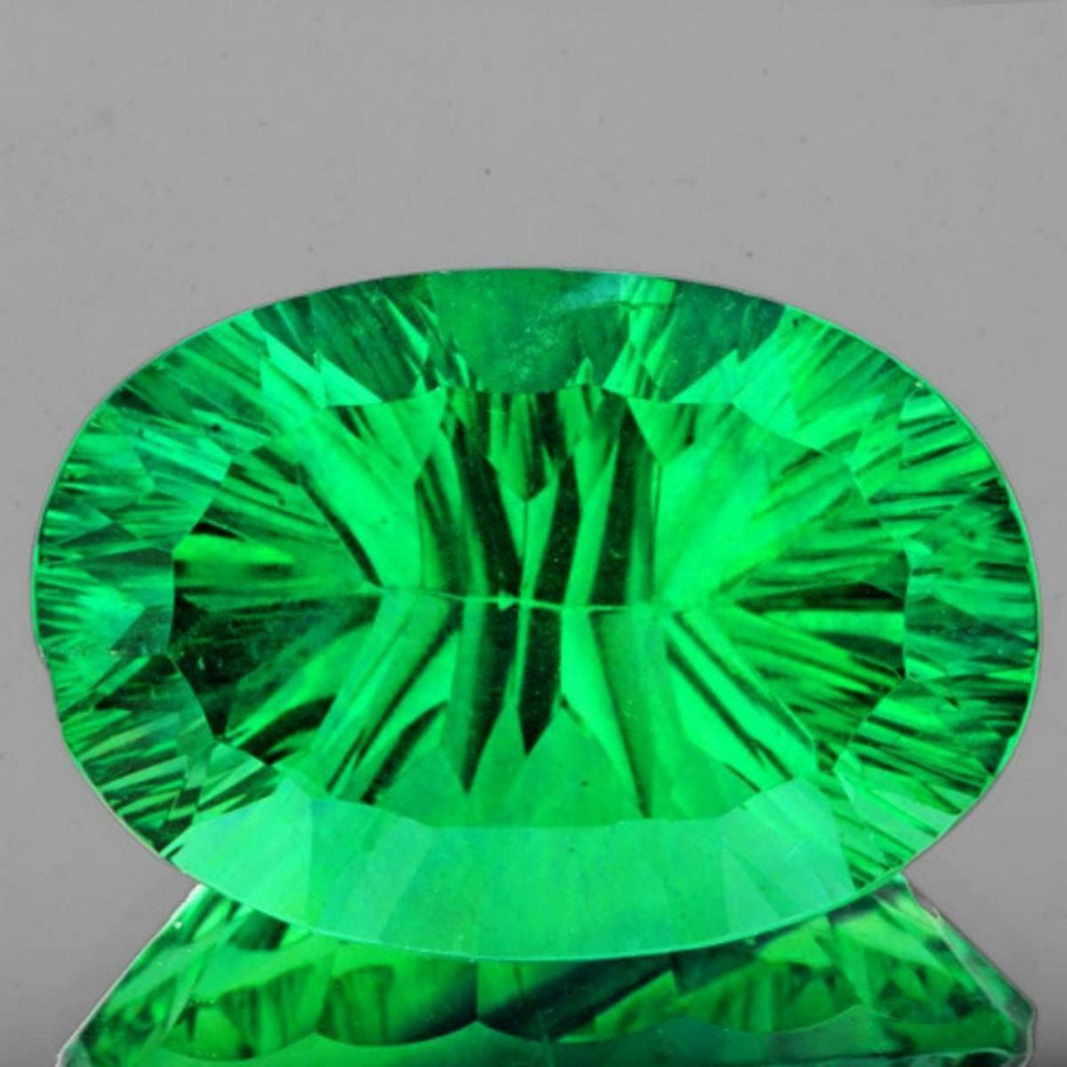 Natural Fluorite WEIGHT : 23.97cts SHAPE : Oval (Concave Cut) SIZE ( L x W x D ) : 21.61 x 15.43 x 11.45 mm QUANTITY : 1 piece COLOR : Emerald Green Best AAA Color CLARITY : Flawless-VVS AAA Grade ORIGIN : Brazil; HARDNESS : 4-5 LUSTER : Excellent!!! TREATMENT : 100% Natural Unheated; Fluorite is made up of calcium fluoride and has a transparent or translucent appearance. Sometimes it can be a colorless crystal, but other times it can also be purple, blue, green, yellow, or pink, or other combinations of these colors. Fluorite is sometimes called fluorspar. The name is derived from the Latin word ‘fluo’, meaning to flow. It’s one of the most sought after and most collectible crystals in the world because of its luminosity and beauty. It has a soft and glassy appearance that is often very vibrant.........On a psychic level, Fluorite is a very protective crystal. It will help you know when there are external forces trying to control or manipulate you, and it can effectively shut down any kind of mental or psychic manipulation. This is a particularly useful crystal to have at work when you are surrounded by hostile or opposing forces. It’s also a powerful crystal to ward off negative energies that threaten your personal relationships. Fluorite can get rid of any electromagnetic fog that can attract or retain negative energies and make you feel psychically, emotionally, or mentally lethargic. It can purify your body and eliminate anything that’s causing it not to function perfectly. It can bring you calmness and relaxation, and it can relieve all your tensions and anxieties.....Fluorite can help you have more structure in your everyday life, making you physically, emotionally, and mentally prepared to overcome both small and big challenges. This crystal can help you declutter and get rid of the things, or even people, that are no longer healthy for you. It can support you in breaking away from rigid patterns of behavior or old ways of thinking. It has the ability to increase your intuition. It can increase your sense of confidence and strengthen your know-hows when it comes to life. If you’re feeling lost, confused, or empty, the uplifting energies of this crystal will reassure you that everything’s going to be alright.