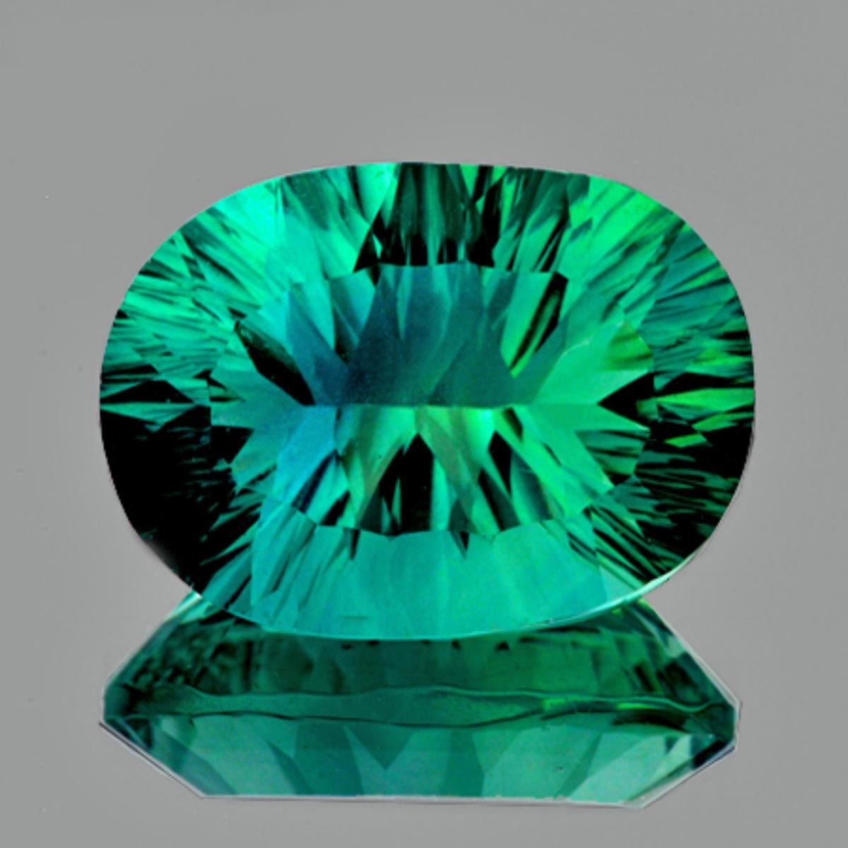Natural Fluorite; WEIGHT : 30.66 cts; SHAPE : Oval (Concave Cut) SIZE ( L x W x D ) : 23.14 x 16.50 x 12.75 mm; QUANTITY : 1 piece ; COLOR : Emerald Green AAA Color; CLARITY : Flawless-VVS1 ; AAA Grade; ORIGIN : Brazil; HARDNESS : 4-5; LUSTER : Excellent!!! TREATMENT : 100% Natural Unheated; Fluorite is made up of calcium fluoride and has a transparent or translucent appearance. Sometimes it can be a colorless crystal, but other times it can also be purple, blue, green, yellow, or pink, or other combinations of these colors.Fluorite is sometimes called fluorspar. The name is derived from the Latin word ?fluo?, meaning to flow.It?s one of the most sought after and most collectible crystals in the world because of its luminosity and beauty. It has a soft and glassy appearance that is often very vibrant.........On a psychic level, Fluorite is a very protective crystal. It will help you know when there are external forces trying to control or manipulate you, and it can effectively shut down any kind of mental or psychic manipulation.This is a particularly useful crystal to have at work when you are surrounded by hostile or opposing forces. It?s also a powerful crystal to ward off negative energies that threaten your personal relationships.Fluorite can get rid of any electromagnetic fog that can attract or retain negative energies and make you feel psychically, emotionally, or mentally lethargic.It can purify your body and eliminate anything that?s causing it not to function perfectly. It can bring you calmness and relaxation, and it can relieve all your tensions and anxieties.....Fluorite can help you have more structure in your everyday life, making you physically, emotionally, and mentally prepared to overcome both small and big challenges.This crystal can help you declutter and get rid of the things, or even people, that are no longer healthy for you. It can support you in breaking away from rigid patterns of behavior or old ways of thinking.It has the ability to increase your intuition. It can increase your sense of confidence and strengthen your know-hows when it comes to life.If you?re feeling lost, confused, or empty, the uplifting energie