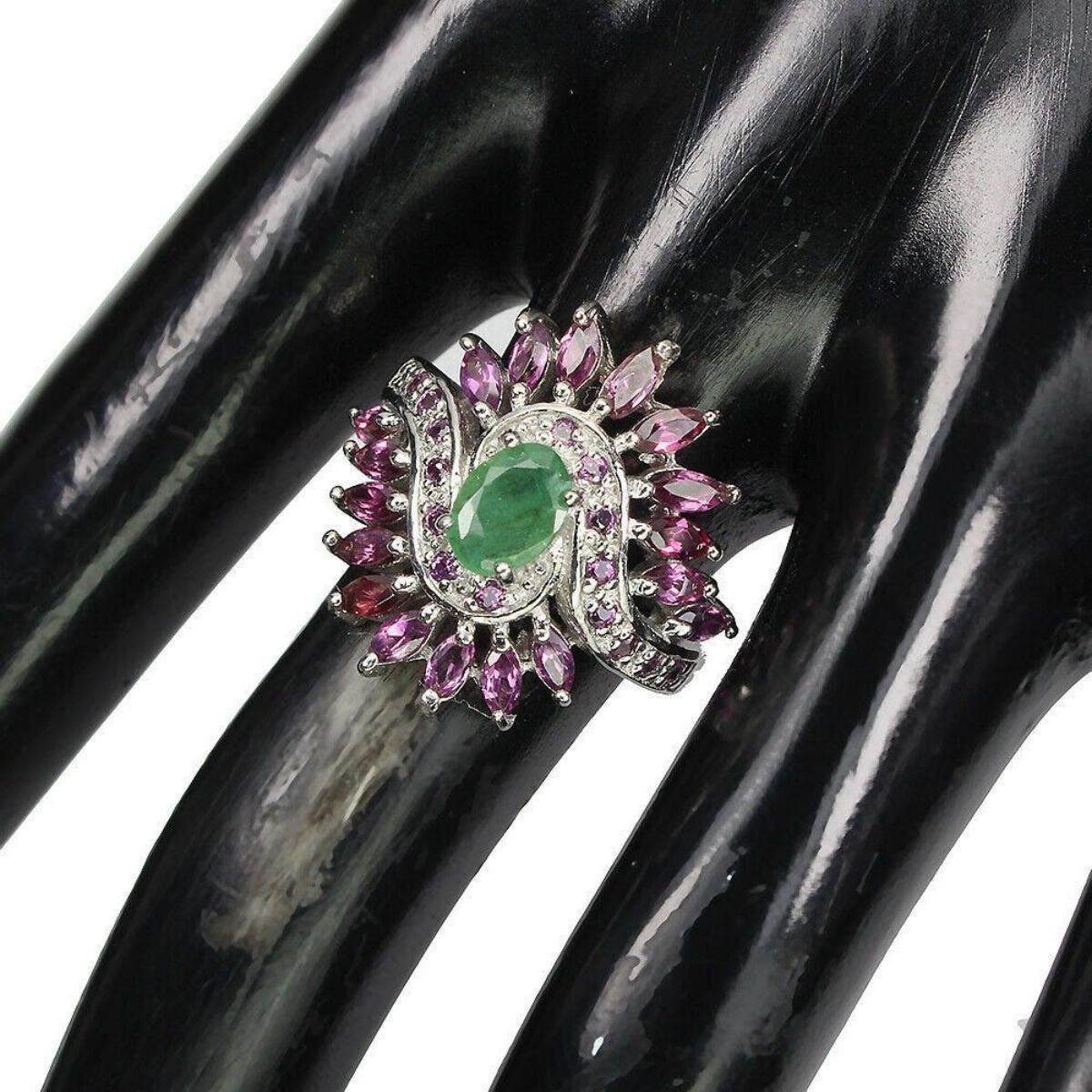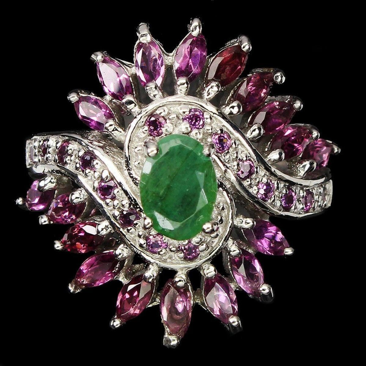 925 STERLING SILVER;PLATE-14K WHITE GOLD;RING SIZE/resizeable-8.5;MAIN STONE-RHODOLITE GARNET;OTHER GEMS-EMERALD;TOTAL WEIGHT-5.55 GRAM (TOTAL WEIGHT OF SILVER + STONE)DIMENSION-* STONE 1.5 TO 7.0 X 5.0 MM. * RING SIZE 8.5 * FACE RING 23.0 MM.;MAIN STONE SHAPE-MARQUISE CUT;MAIN STONE COLOR-TOP RICH PINK RASPBERRY;CLARITY/GRADE-IF TO VVS;TREATMENT-UNHEATED;ORIGIN-AFRICA;HARDNESS-7.0 - 7.5;