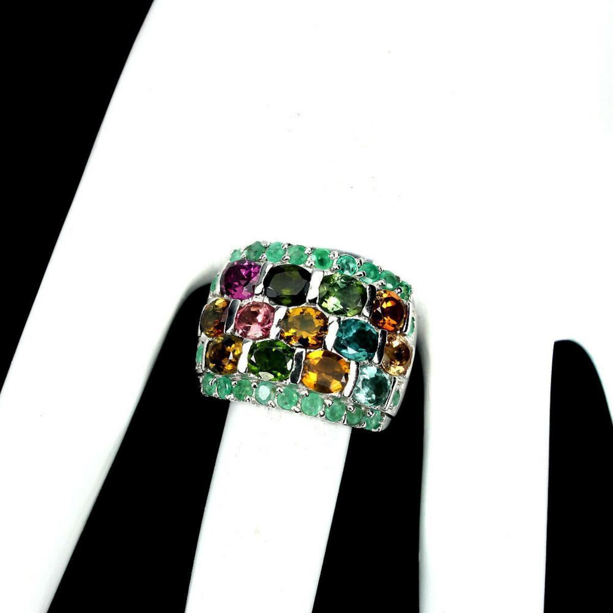 925 STERLING SILVER;PLATE...14K WHITE GOLD;RING SIZE-8(resizeable)MAIN STONE-TOURMALINE;OTHER GEMS-EMERALD;TOTAL WEIGHT-9.94 GRAM (TOTAL WEIGHT OF SILVER + STONE)DIMENSION* STONE 2.0 TO 5.0 X 4.0 MM. * RING SIZE 8.0 * FACE RING 23.0 X 17.0 MM.;;MAIN STONE SHAPE-OVAL CUT;MAIN STONE COLOR-MULTI-COLOR;CLARITY/GRADE-IF TO VVS;LUSTER-GRACEFULLY;TREATMENT-UNHEATED;ORIGIN-BRAZIL;HARDNESS-7.0-7.5;