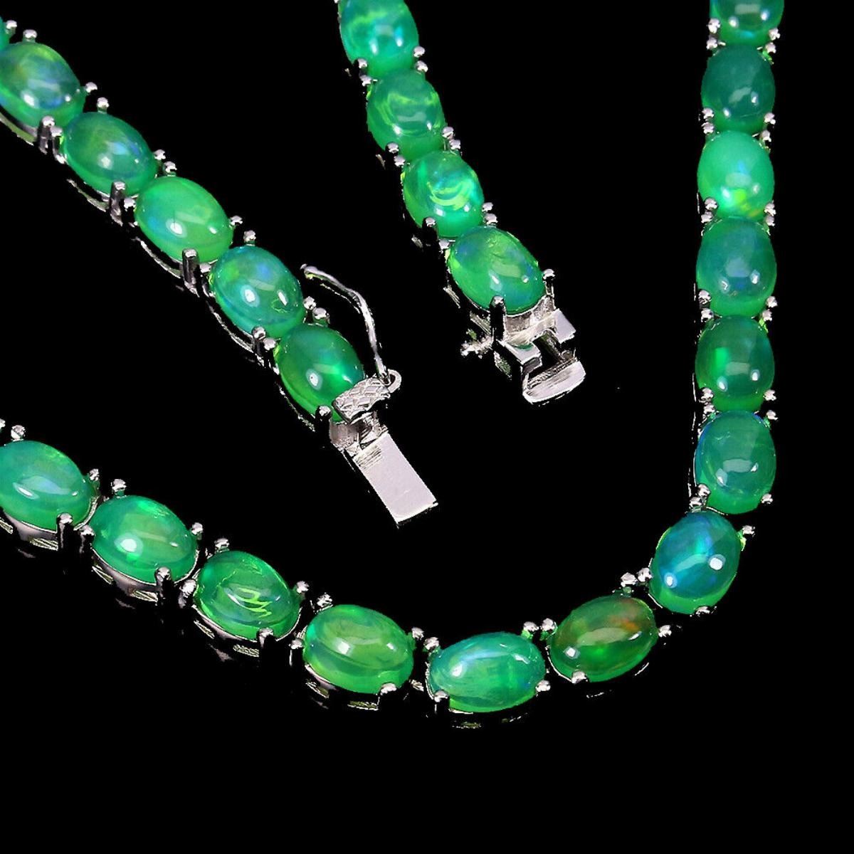 925 STERLING SILVER;PLATE-14K WHITE GOLD;LENGTH (INCHES)-18;MAIN STONE-GREEN OPAL;TOTAL WEIGHT-36.78 GRAM (TOTAL WEIGHT OF SILVER + STONE);DIMENSION-* STONE 7.0 X 5.0 MM. * TOTAL LENGTH 18.0 INCHES. * STONES PART LENGTH 455.0 X 5.0 MM.;MAIN STONE SHAPE-OVAL CABOCHON;MAIN STONE COLOR-GREEN;TREATMENT-YES;ORIGIN-ETHIOPIA;
