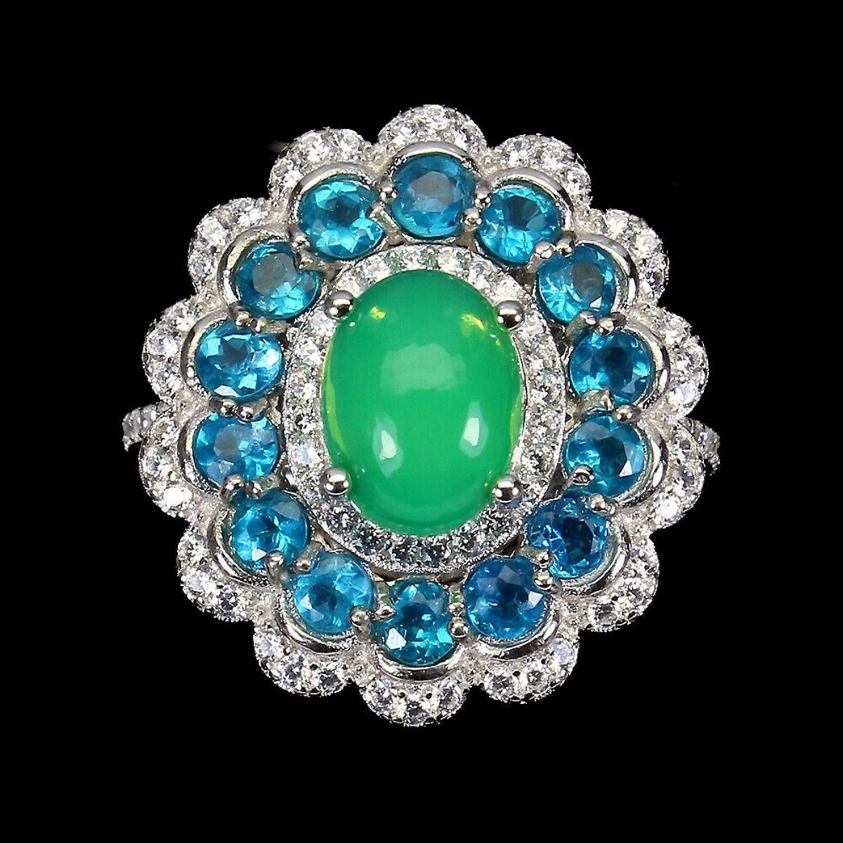 925 STERLING SILVER;PLATE-14K WHITE GOLD;RING SIZE-7.5(RESIZABLE);MAIN STONE-GREEN OPAL;TOTAL WEIGHT-5.38 GRAM (TOTAL WEIGHT OF SILVER + STONE);DIMENSION-* STONE 3.0 TO 9.0 X 7.0 MM. * RING SIZE 7.5 * FACE RING 22.0 X 21.0 MM.;MAIN STONE SHAPE-OVAL CABOCHON;MAIN STONE COLOR-GREEN;TREATMENT-YES;ORIGIN-ETHIOPIA;HARDNESS-5.5 - 6.5;