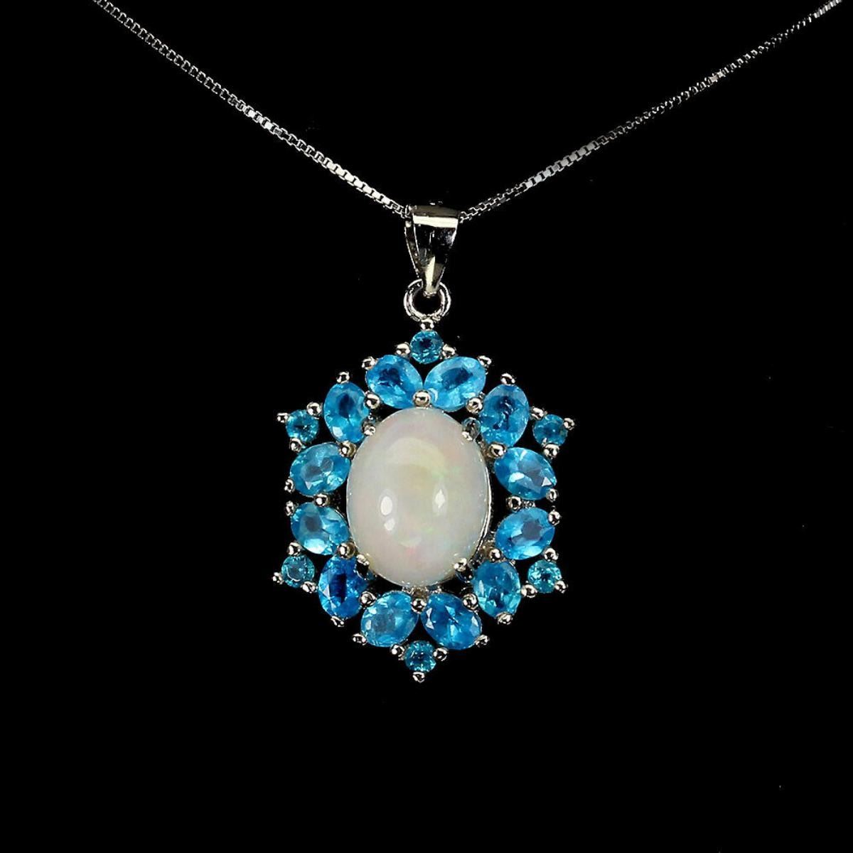 925 STERLING SILVER;PLATE-14K WHITE GOLD;LENGTH (INCHES)-18;MAIN STONE- OPAL;OTHER GEMS-APATITE;TOTAL WEIGHT-4.21 GRAM (TOTAL WEIGHT OF SILVER + STONE);DIMENSION-* STONE 2.0 TO 11.0 X 9.0 MM.* TOTAL LENGTH 18.0 INCHES.* STONES PART LENGTH 31.0 X 19.0 MM.;MAIN STONE SHAPE-OVAL CABOCHON;MAIN STONE COLOR-WHITE;TREATMENT-UNHEATED;ORIGIN-ETHIOPIA;HARDNESS-5.5 - 6.5;