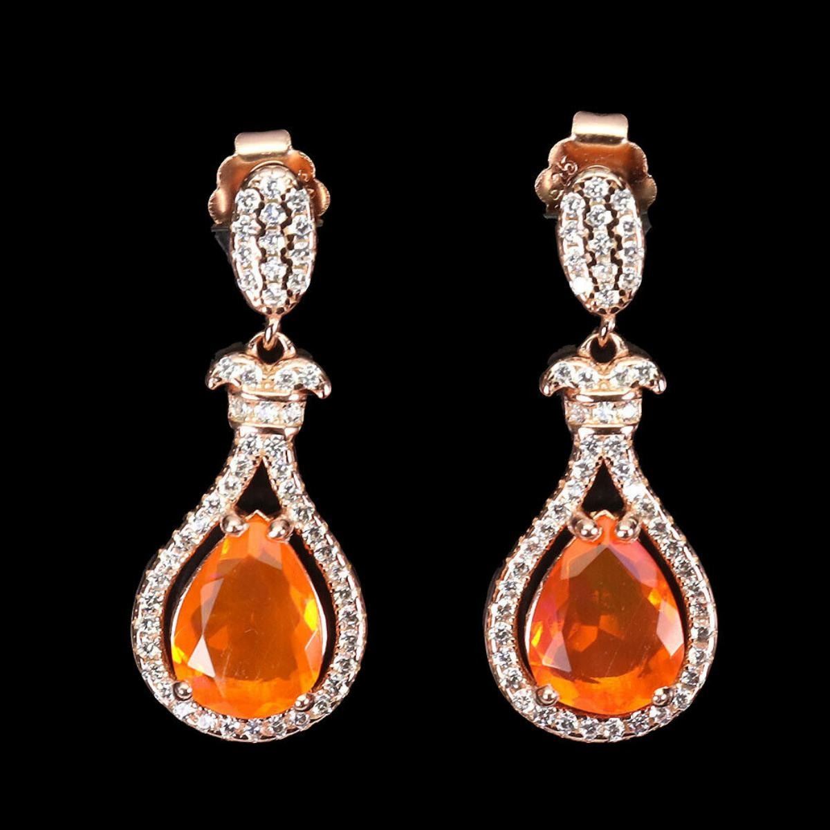 925 STERLING SILVER;PLATE-14K ROSE GOLD;MAIN STONE-ORANGE OPAL;TOTAL WEIGHT-4.16 GRAM (TOTAL WEIGHT OF SILVER + STONE);DIMENSION-* STONE 9.0 X 7.0 MM.* FACE EARRINGS 25.0 X 11.0 MM.;MAIN STONE SHAPE-PEAR; MAIN STONE COLOR-ORANGE;CLARITY/GRADE-IF;TREATMENT-YES;ORIGIN-ETHIOPIA;HARDNESS-5.5 - 6.5;