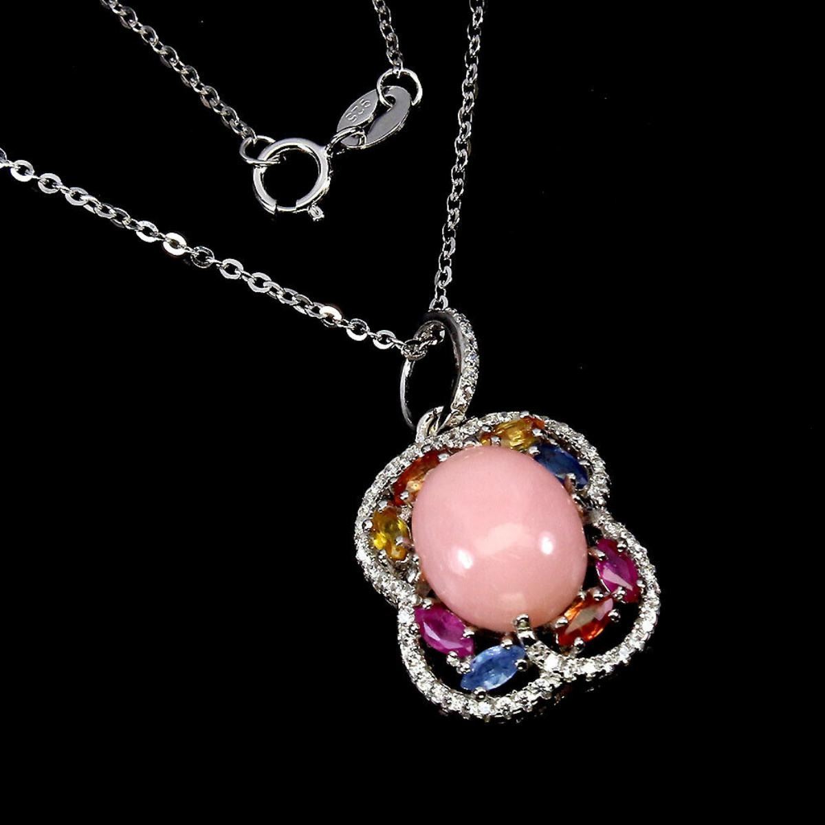 925 STERLING SILVER;PLATE-14K WHITE GOLD;LENGTH (INCHES)-18;MAIN STONE-PINK OPAL;OTHER GEMS-SAPPHIRE, WHITE TOPAZ;TOTAL WEIGHT-4.78 GRAM (TOTAL WEIGHT OF SILVER + STONE);DIMENSION-* STONE 1.0 TO 11.0 X 9.0 MM.* TOTAL LENGTH18.0 INCHES.* STONES PART LENGTH 26.0 X 15.0 MM.;MAIN STONE SHAPE-OVAL CABOCHON;MAIN STONE COLOR-PINK;TREATMENT-UNHEATED;ORIGIN-ETHIOPIA;HARDNESS-5.5 - 6.5;