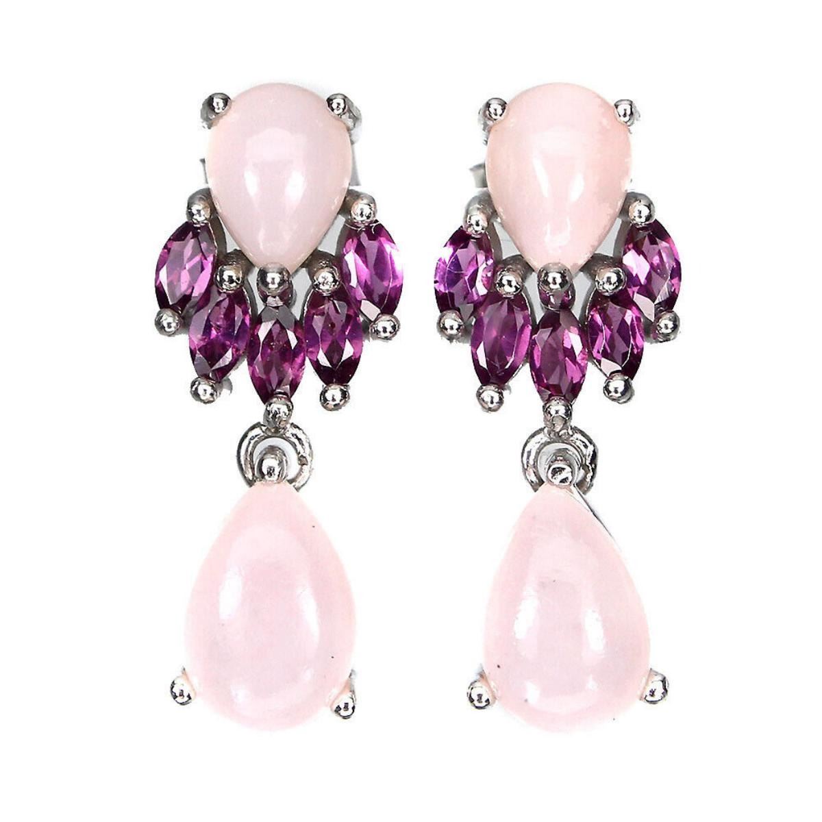925 STERLING SILVER;PLATE-14K WHITE GOLD;MAIN STONE-PINK OPAL;OTHER GEMS-RHODOLITE GARNET;TOTAL WEIGHT-4.11 GRAM (TOTAL WEIGHT OF SILVER + STONE);DIMENSION-* STONE 4.0 TO 8.0 X 6.0 MM. * FACE EARRINGS 23.0 X 9.0 MM.;MAIN STONE SHAPE-PEAR CABOCHON;MAIN STONE COLOR- PINK;TREATMENT-UNHEATED;ORIGIN-ETHIOPIA;HARDNESS-5.5 - 6.5;
