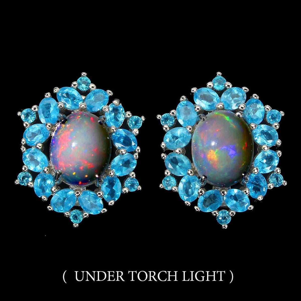 925 STERLING SILVER;PLATE-14K WHITE GOLD;MAIN STONE- OPAL;OTHER GEMS-APATITE;TOTAL WEIGHT-7.46 GRAM (TOTAL WEIGHT OF SILVER + STONE);DIMENSION-* STONE 2.0 TO 11.0 X 9.0 MM.* FACE EARRINGS 23.0 X 19.0 MM.MAIN STONE SHAPE-OVAL CABOCHON;MAIN STONE COLOR-WHITE;TREATMENT-UNHEATED;ORIGINETHIOPIA;HARDNESS5.5 - 6.5;