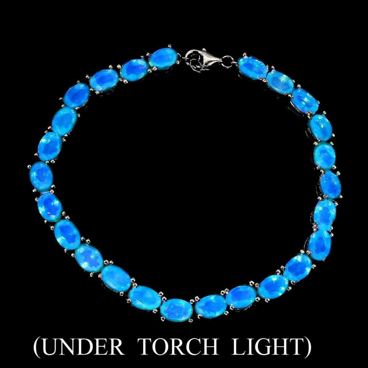 925 STERLING SILVER;PLATE-14K WHITE GOLD;LENGTH (INCHES)8;MAIN STONE-FIRE OPAL;OTHER GEMSTOTAL WEIGHT-68.24 CT (TOTAL WEIGHT OF SILVER + STONE)DIMENSION* STONE 7.0 X 5.0 MM. * STONES PART LENGTH 180.0 X 5.0 MM.;MAIN STONE SHAPE-OVAL CUT;MAIN STONE COLOR-TOP RICH BLUE;CLARITY/GRADE-IF;ORIGIN-ETHIOPIA;HARDNESS-5.5 - 6.5