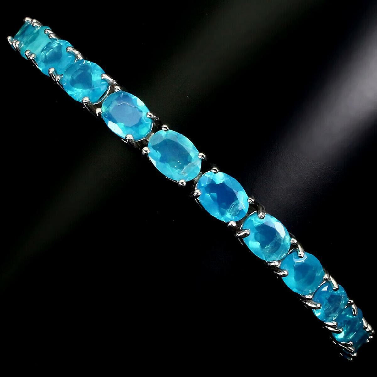 925 STERLING SILVER;PLATE-14K WHITE GOLD;LENGTH (INCHES)10;MAIN STONE-BLUE FIRE OPAL;TOTAL WEIGHT-9.49 GRAM (TOTAL WEIGHT OF SILVER + STONE)DIMENSION* STONE 7.0 X 5.0 MM. * FACE BRACELET 100.0 X 5.0 MM.MAIN STONE SHAPE-OVAL CUT;MAIN STONE COLOR-TOP RICH BLUE;CLARITY/GRADE-IF;ORIGIN-ETHIOPIA;HARDNESS-5.5 - 6.5;