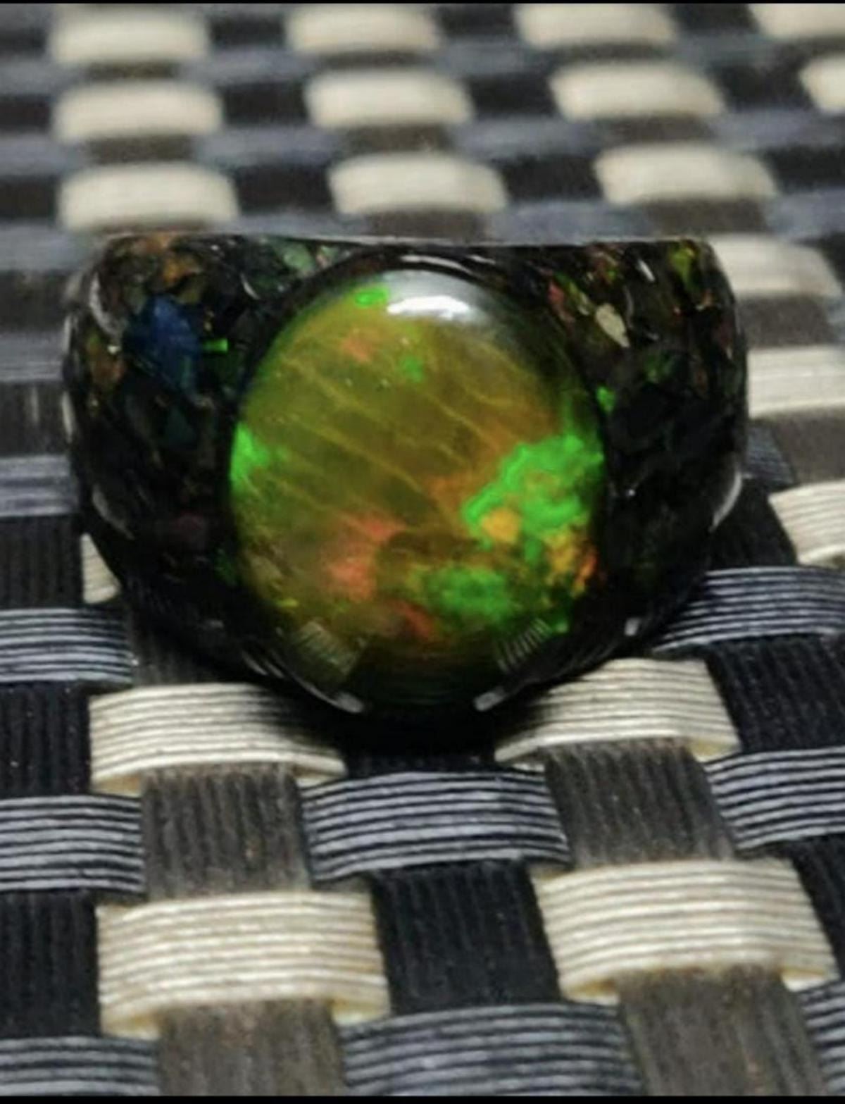 Natural Ethopian Colorfull Opal 32.00 Carats Ring ............all ring is made of opal including the band. Ring Size 6.5; Origin - Ethopia; Completely natural untreated in any way.