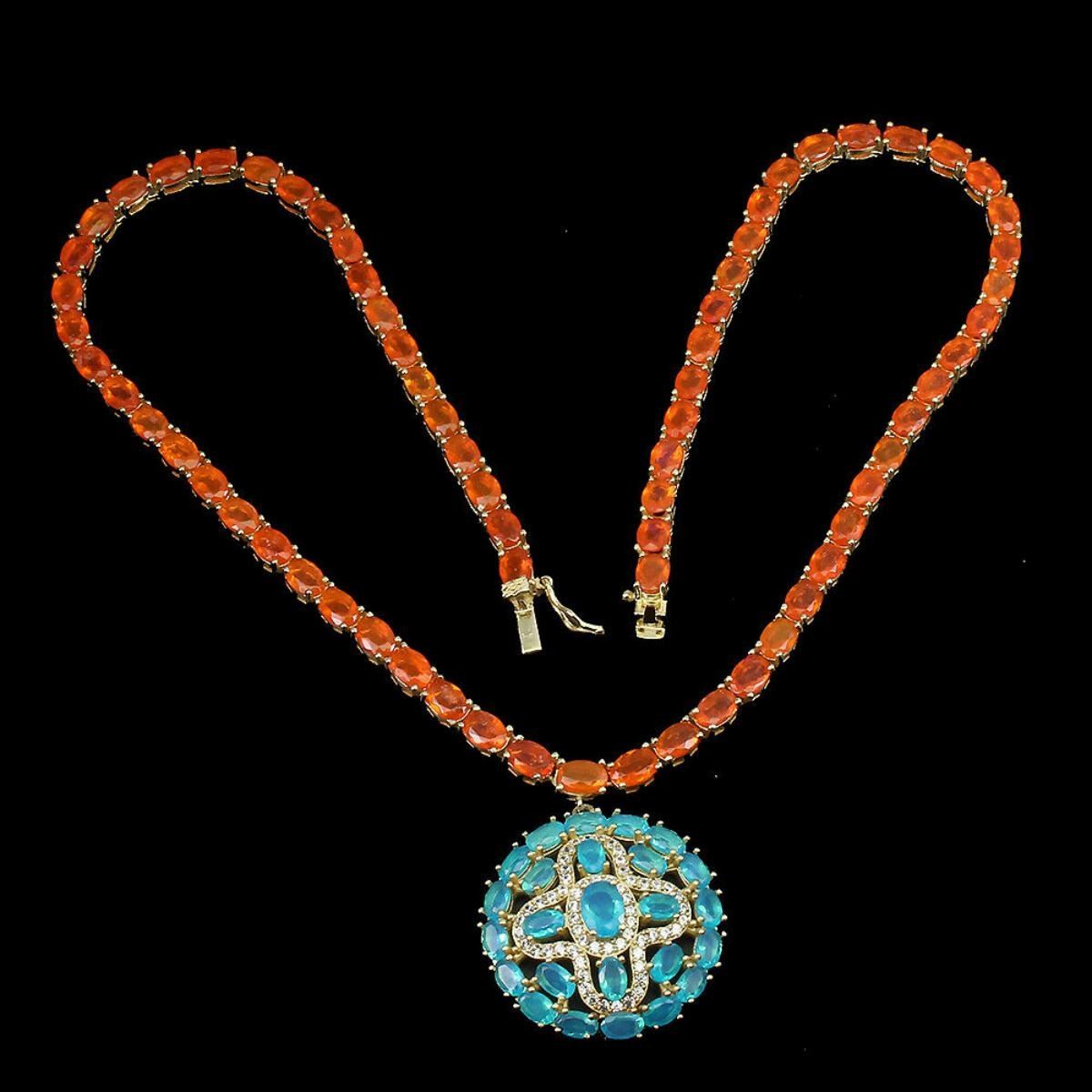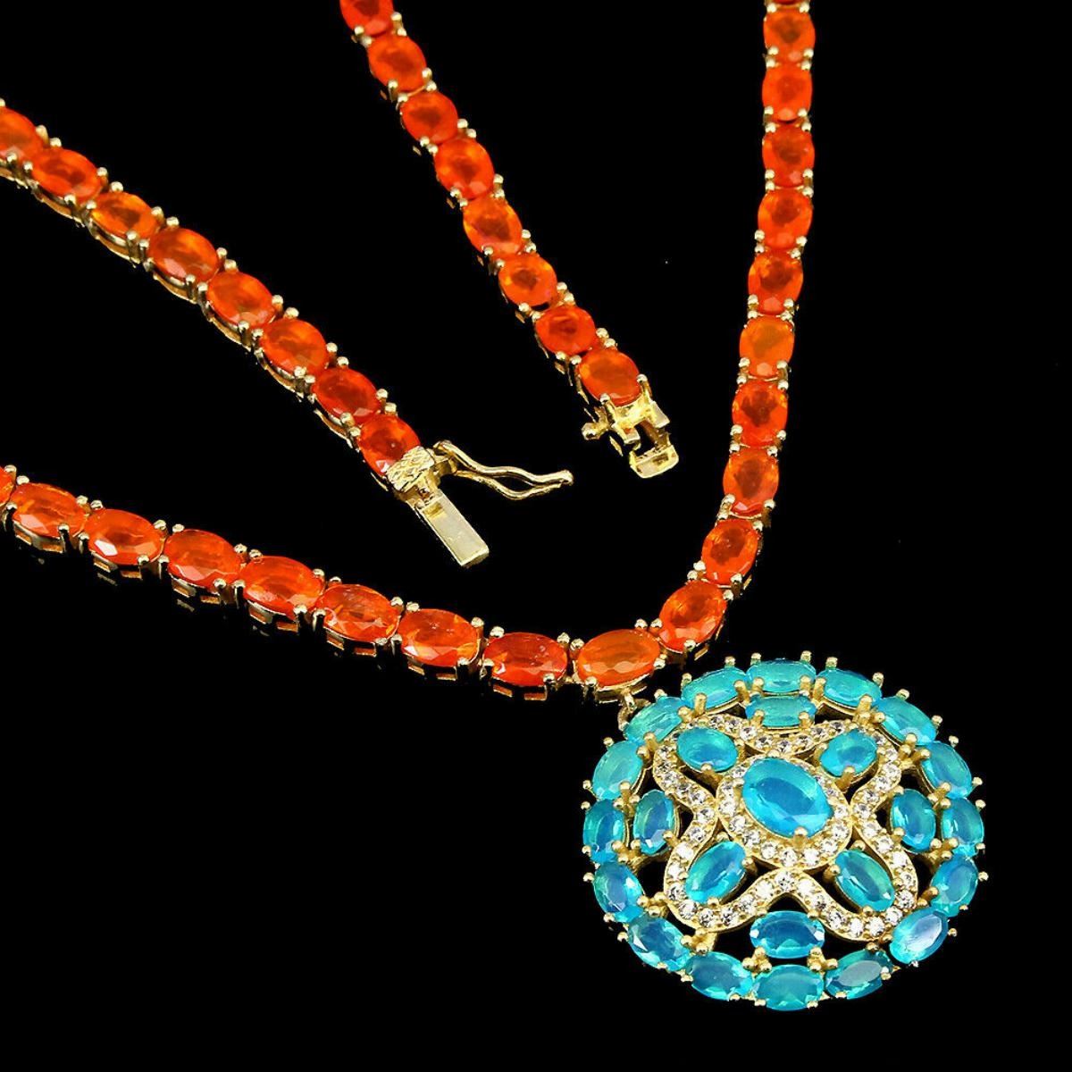925 STERLING SILVER;PLATE-14K YELLOW GOLD;LENGTH- (INCHES)17.5;;MAIN STONE-ORANGE FIRE OPALOTHER GEMS-APATITE, TOTAL WEIGHT-37.38 GRAM (TOTAL WEIGHT OF SILVER + STONE)DIMENSION-* STONE 5.0 X 3.0 TO 7.0 X 5.0 MM. * CZ 1.0 MM. * TOTAL LENGTH- 17.5 INCHES. * STONES PART LENGTH 430.0 X 35.0 MM.MAIN STONE SHAPEOVAL CUT;MAIN STONE COLOR-TOP RICH ORANGE;CLARITY/GRADE-IF TO VVS;LUSTER-GORGEOUS;ORIGIN-ETHIOPIA & Brazil