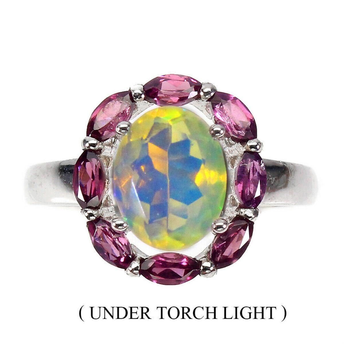 925 STERLING SILVER;PLATE14K WHITE GOLD;RING SIZE/resizeable-6;MAIN STONE-FIRE OPAL;OTHER GEMS-BLACK SPINEL, RHODOLITE GARNET;TOTAL WEIGHT-2.69 GRAM (TOTAL WEIGHT OF SILVER + STONE)DIMENSION-* STONE 4.0 X 2.0 TO 9.0 X 7.0 MM. * RING SIZE 6.0 * FACE RING 14.0 X 12.0 MM.;MAIN STONE SHAPE-OVAL CUT;TREATMENT-UNHEATED;ORIGIN-ETHIOPIA;HARDNESS-5;