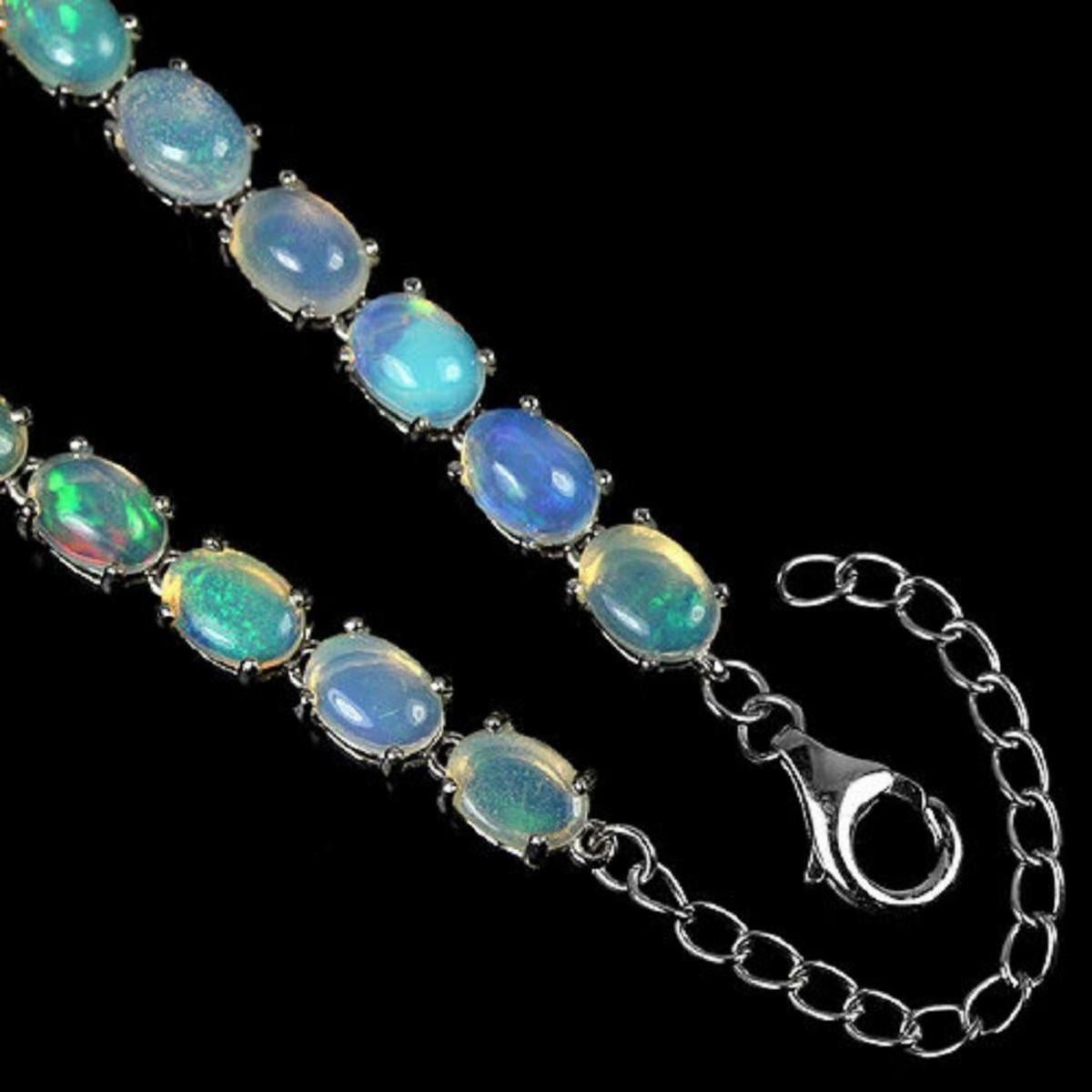 NATURAL RAINBOW WHITE OPAL OVAL 925 SILVER BRACELET 14K WHITE GOLD COATING; LENGTH OF ITEM (Inch.)8.75 ;ITEM QUANTITY1STONE SHAPEOVAL CABOCHON CUTSTONE DIMENSION7 X 5 MM.ITEM WEIGHT10.8 GRAM COLOR WHITE CLARITY TRANSPARENT LUSTER FANTASTIC TREATMENT NATURAL UNHEATED ORIGIN OF STONE AFRICA HARDNESS5.5 - 6.5