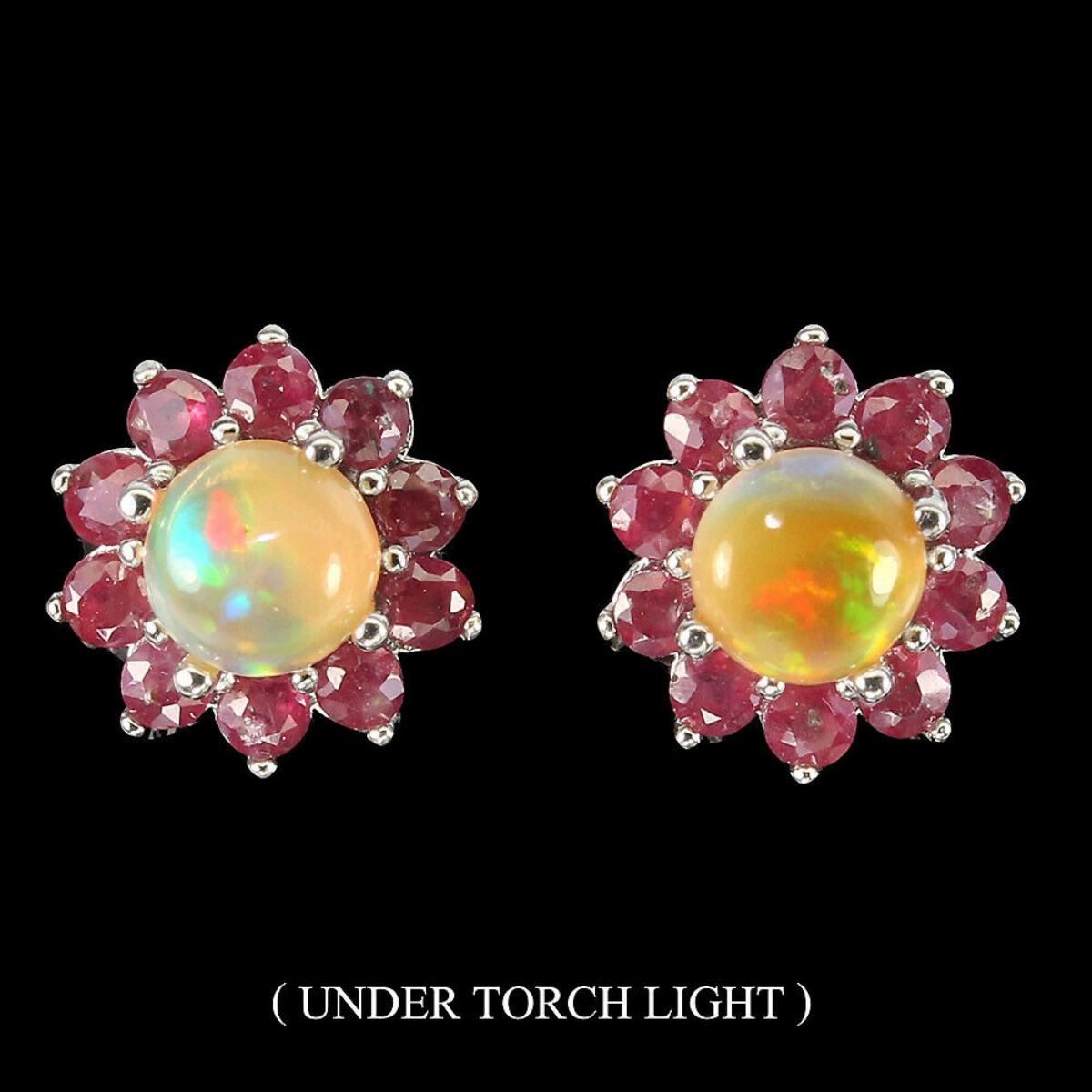 925 STERLING SILVER;PLATE-14K WHITE GOLDMAIN STONE-FIRE OPAL;OTHER GEMS-RUBY;TOTAL WEIGHT-3.58 GRAM (TOTAL WEIGHT OF SILVER + STONE)DIMENSION-* STONE 2.5 TO 6.0 MM.;* FACE EARRINGS- 12.0 X 11.0 MM.;MAIN STONE COLOR-White;TREATMENT-UNHEATED;ORIGIN-ETHIOPIA;HARDNESS-5.5 - 6.5;