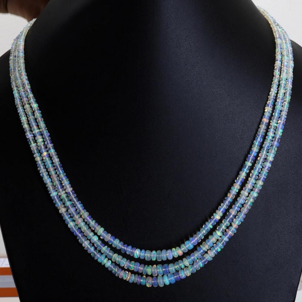 Natural Etopian Untreated White Opal Necklace..........3 Lines....Natural Opal weight 150 Carats ......Brilliant rainbow colors....There is no treatment to these stones in the Necklace...Please note this image is taken with Torch light to get the full glow of these opals...