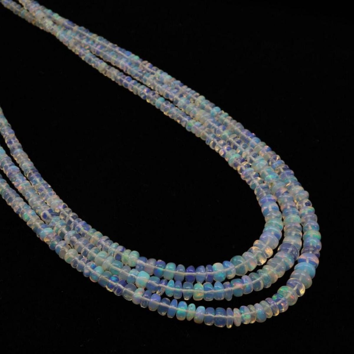 Natural Etopian Untreated White Opal Necklace..........3 Lines....Natural Opal weight 150 Carats ......Brilliant rainbow colors....There is no treatment to these stones in the Necklace...Please note this image is taken with Torch light to get the full glow of these opals...