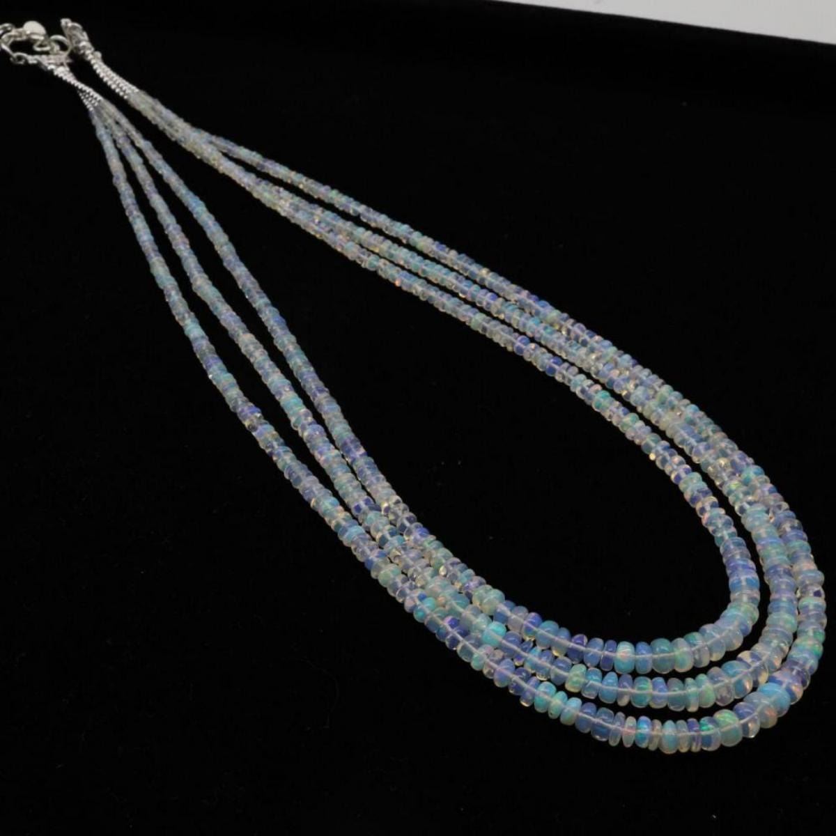 Natural Etopian Untreated White Opal Necklace..........3 Lines....Natural Opal weight 150 Carats ......Brilliant rainbow colors....There is no treatment to these stones in the Necklace...Please note this image is taken with Torch light to get the full glow of these opals...