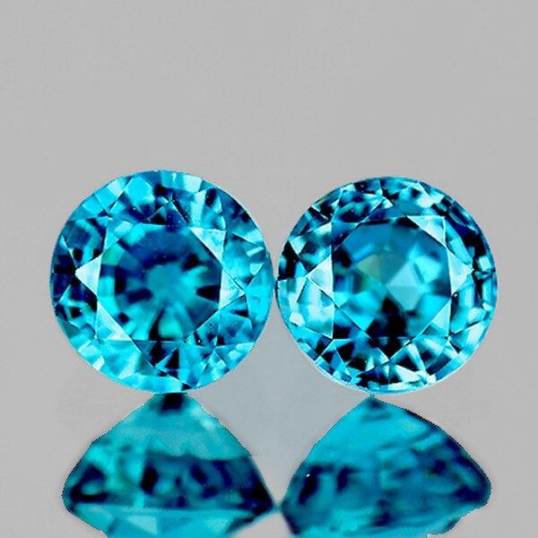 WEIGHT : 2.40 cts;STONE NAME : Natural Zircon (Earthly Mined);SIZE ( L x W x D ) : 6.00 mm;COLOR : Intense Blue;SHAPE : Round (Step Cut)QUANTITY : 2 pieces;LUSTER : Extreme Brilliancy;CLARITY : FLAWLESS-VVS1 ; HARDNESS : 7.5;ORIGIN : Cambodia;