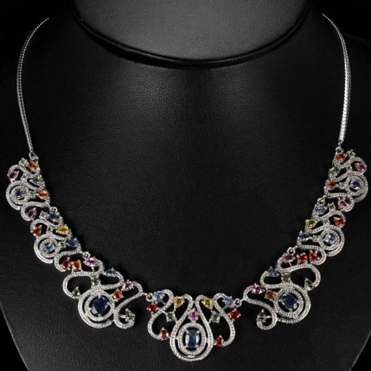 LENGTH OF ITEM (Inch.)18.75;ITEM QUANTITY1;STONE SHAPE-OVAL & ROUND FACET CUT;STONE DIMENSION-7 X 5 MM. , 4 X 3 MM. , 3.5 MM. , 2.2 MM.;ITEM WEIGHT35.94 grams or (179 Carats) COLOR-MULTI COLOR;CLARITY-TRANSLUCENT & VVS-SI;TREATMENT-HEATED;ORIGIN OF STONE-AFRICA;HARDNESS-9;