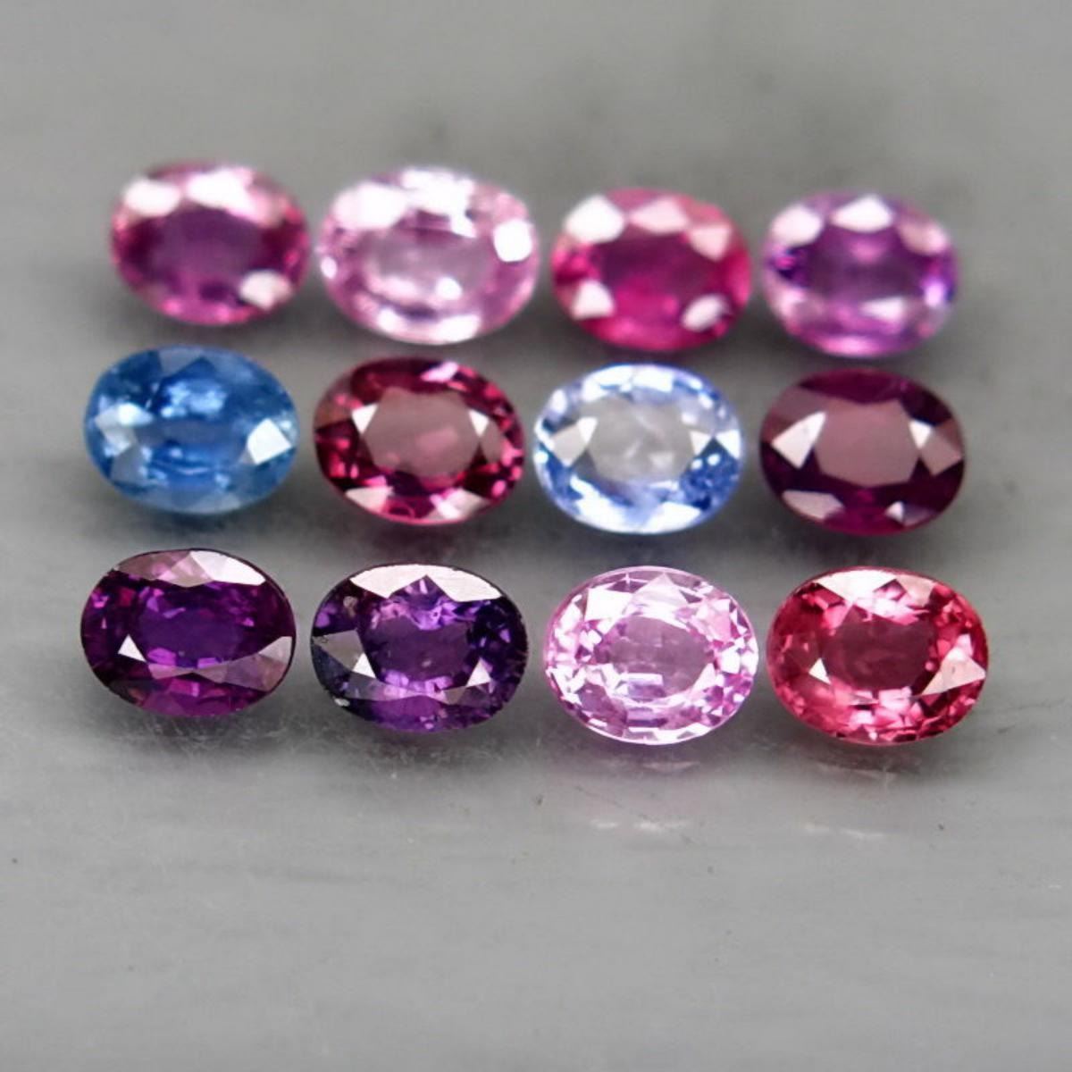 Natural SapphireSHAPE :Oval;WEIGHT :4.38 Ct.;SIZE :4.5 X 3.5 Mm.;QUANTITY :12 Pieces;COLOR :Fancy Colour;CLARITY :Vs Si;LUSTER :Superior;ORIGIN :Africa;TREATMENT :Heated Only;HARDNESS :9