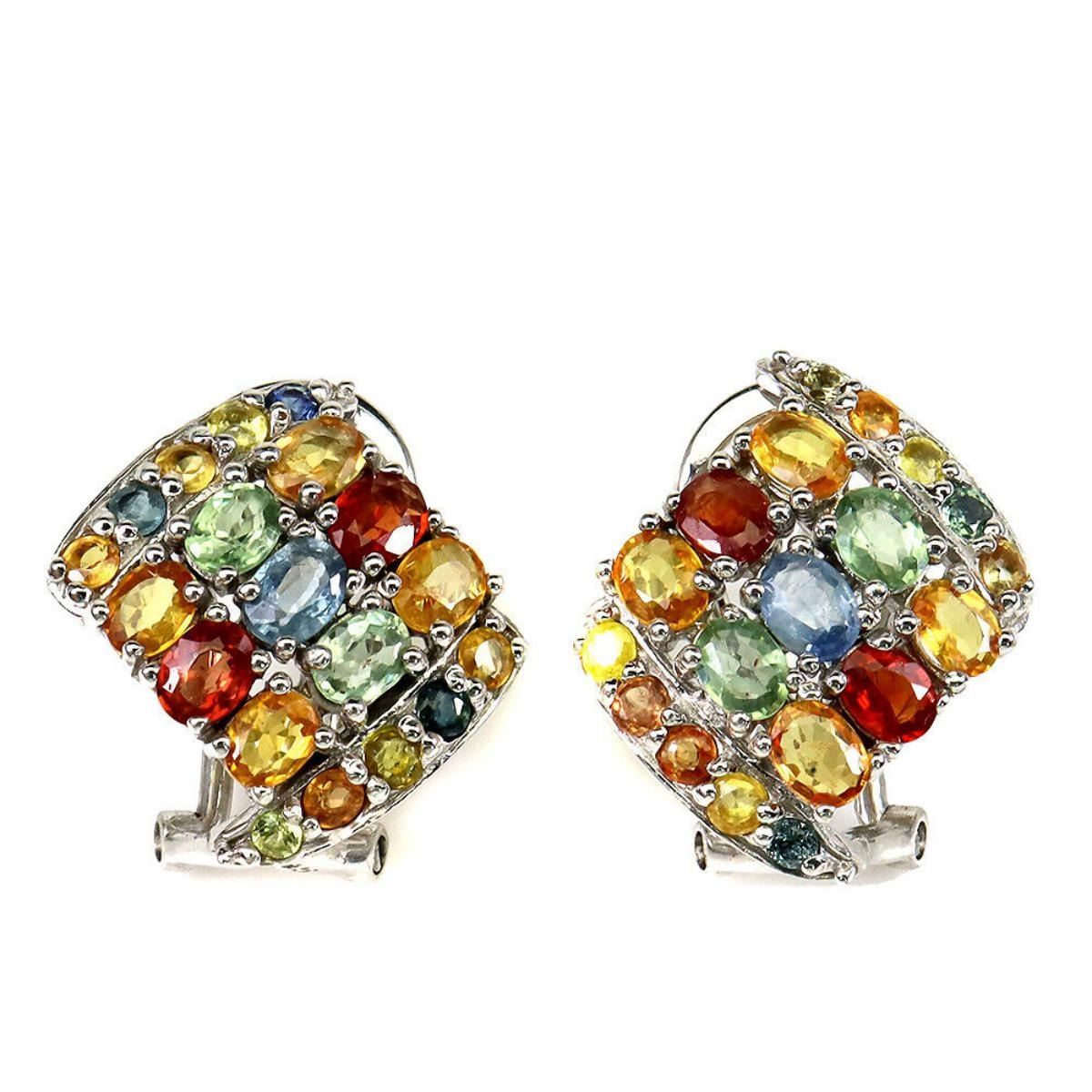 925 STERLING SILVER;PLATE-14K WHITE GOLD;MAIN STONE-SAPPHIRE;TOTAL WEIGHT-5.93 GRAM (TOTAL WEIGHT OF SILVER + STONE)DIMENSION-* STONE 1.5 TO 4.0 X 3.0 MM. * FACE EARRINGS 18.0 X 17.0 MM.;MAIN STONE SHAPE-OVAL CUT;MAIN STONE COLOR-MULTI-COLOR;CLARITY/GRADE-IF TO VVS;TREATMENT-HEATED;ORIGIN- - AFRICA;HARDNESS-9;