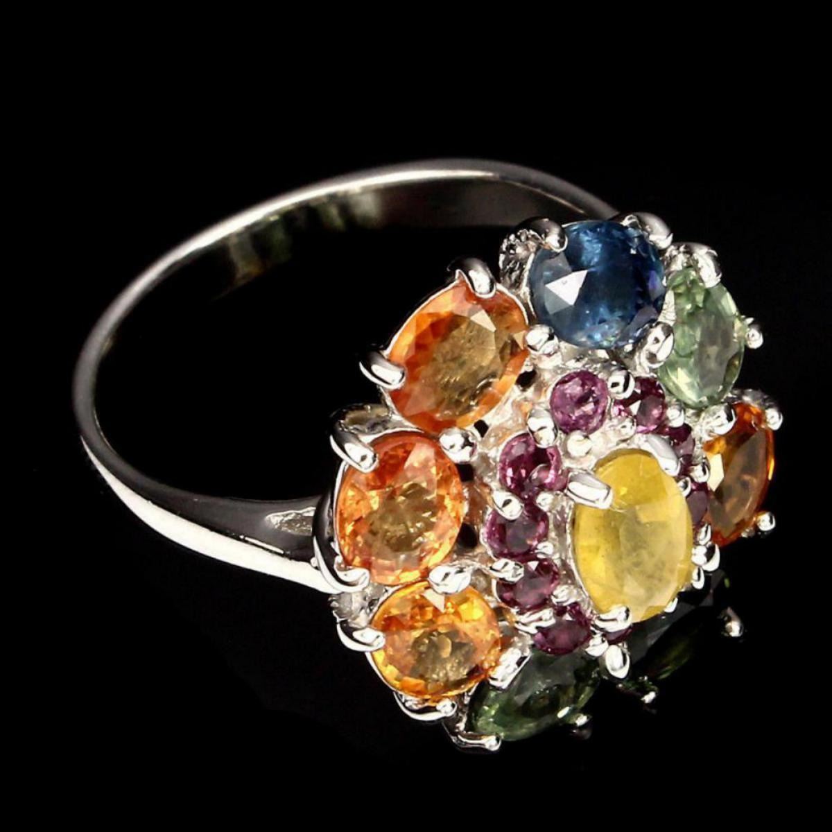 925 STERLING SILVERPLATE14K WHITE GOLD;RING SIZE7.5 (resizeable)MAIN STONESAPPHIREOTHER GEMSRHODOLITE GARNETTOTAL WEIGHT23.50 CT (TOTAL WEIGHT OF SILVER + STONE)DIMENSION* STONE 2.0 TO 6.0 X 4.0 MM. * RING SIZE 7.5 * FACE RING 19.0 X 17.0 MM.MAIN STONE SHAPEOVAL CUTMAIN STONE COLORMULTI-COLORCLARITY/GRADEIF TO VVS; ORIGIN SONGEA - AFRICA HARDNESS 9.0