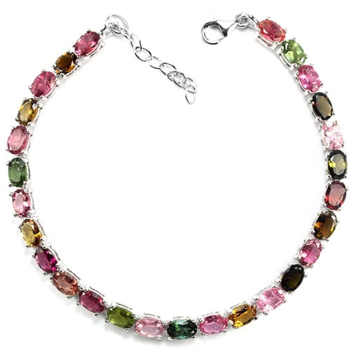 NATURAL MULTI COLOR TOURMALINE OVAL 925 SILVER BRACELET 14K WHITE GOLD COATING; LENGTH OF ITEM (Inch.)8.75 ;ITEM QUANTITY-1;STONE SHAPE-OVAL;STONE DIMENSION-6 X 4 MM.;ITEM WEIGHT-10.06 GRAM;COLOR-MULTI COLOR;CLARITY-VVS - SI;TREATMENT-NATURAL UNHEATED;ORIGIN OF STONE-AFRICA;HARDNESS-7.5;