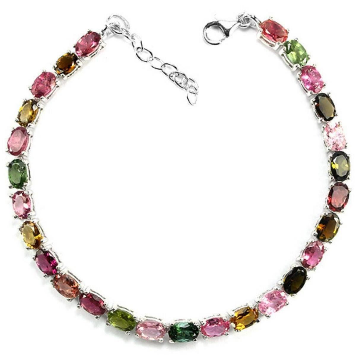 NATURAL MULTI COLOR TOURMALINE OVAL 925 SILVER BRACELET 14K WHITE GOLD COATING; LENGTH OF ITEM (Inch.)8.75 ;ITEM QUANTITY-1;STONE SHAPE-OVAL;STONE DIMENSION-6 X 4 MM.;ITEM WEIGHT-10.06 GRAM;COLOR-MULTI COLOR;CLARITY-VVS - SI;TREATMENT-NATURAL UNHEATED;ORIGIN OF STONE-AFRICA;HARDNESS-7.5;
