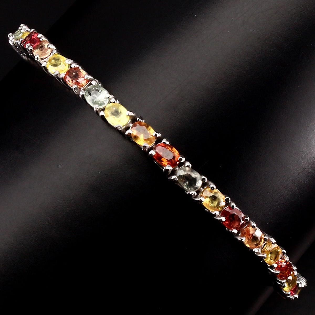 925 STERLING SILVER;PLATE14K WHITE GOLD;LENGTH (INCHES)10;MAIN STONESAPPHIRE;TOTAL WEIGHT41.89 CT (TOTAL WEIGHT OF SILVER + STONE)DIMENSION* STONE 4.0 X 3.0 MM. * FACE BRACELET 104.0 X 4.0 MM.MAIN STONE SHAPEOVAL CUTMAIN STONE COLORTOP FANCY COLORSCLARITY/GRADEIF TO VVSLUSTERPRECIOUSTREATMENTHEATEDORIGINSONGEA - AFRICAHARDNESS9.0