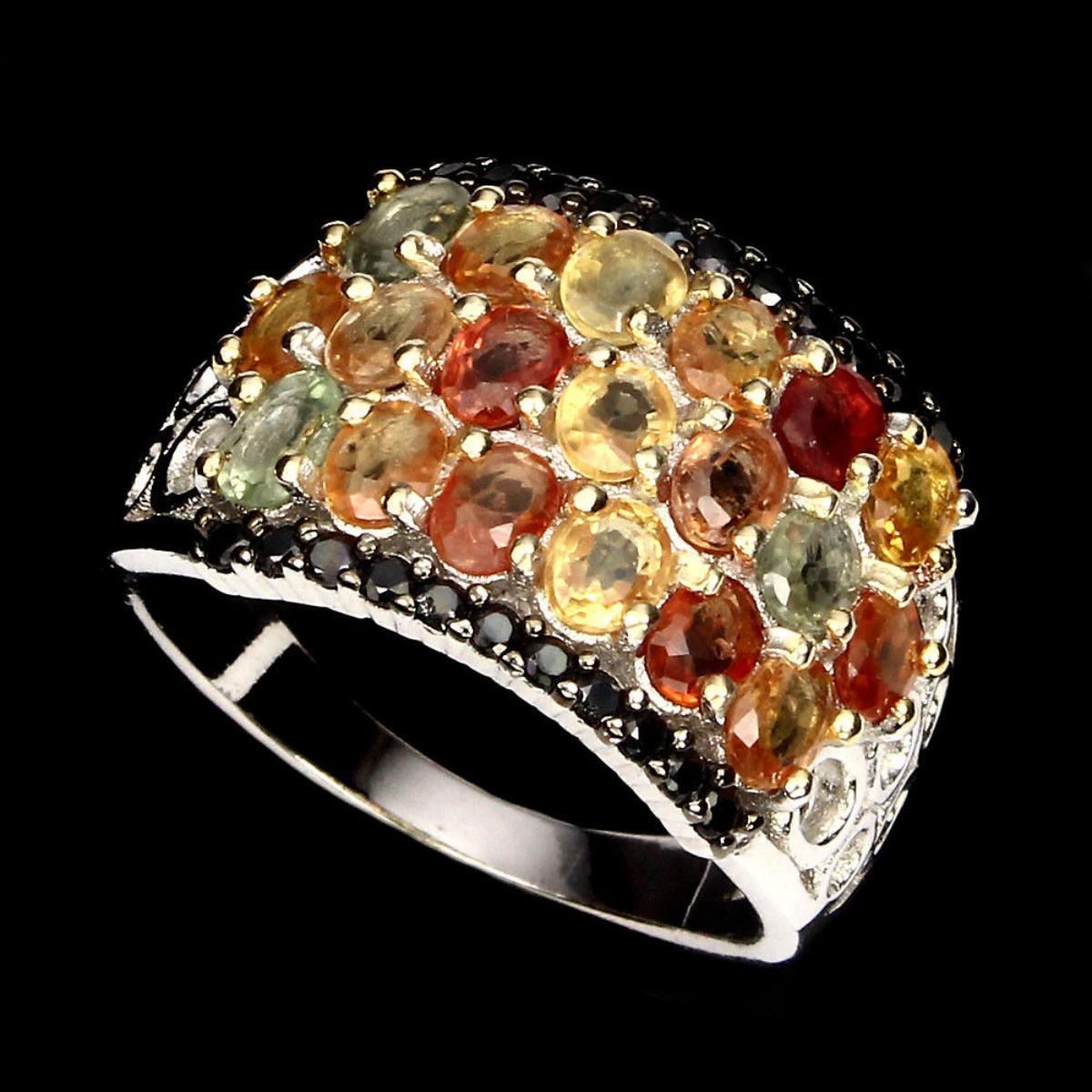 925 STERLING SILVER;PLATE14K WHITE GOLD;RING SIZE7 (resizeable)MAIN STONESAPPHIREOTHER GEMSBLACK SPINELTOTAL WEIGHT31.99 CT (TOTAL WEIGHT OF SILVER + STONE)DIMENSION* STONE 1.0 TO 4.0 X 3.0 MM. * FACE RING 21.0 X 14.0 MM.MAIN STONE SHAPEOVAL CUTMAIN STONE COLORTOP FANCY COLORSCLARITY/GRADEIF TO VVSLUSTERGRACEFULLYTREATMENTHEATEDORIGINSONGEA - AFRICAHARDNESS8.0 - 9.0