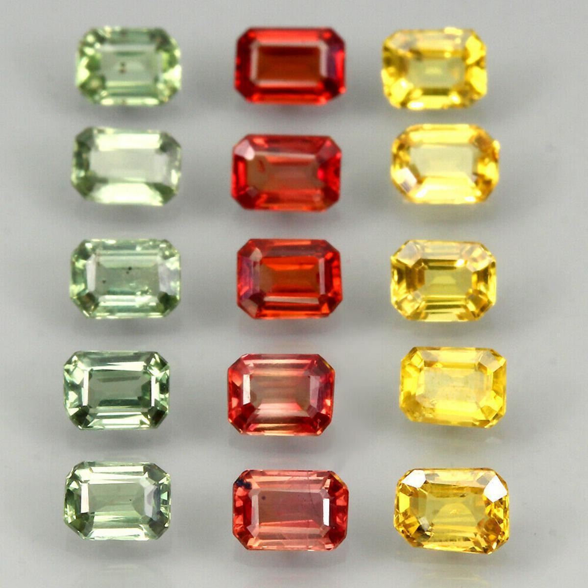 Natural Fancy Sapphire 4x3 MM - 15 Pcs.............TOTAL weight3.52 ct ;DIMENSION4.0 X 3.0 X 2.0 MM.;MAIN STONE SHAPEOctagon Cut;MAIN STONE COLORtop fancy colors;CLARITY - VS/VVS;LUSTERSPARKLE;ORIGIN- Tanzania - Africa