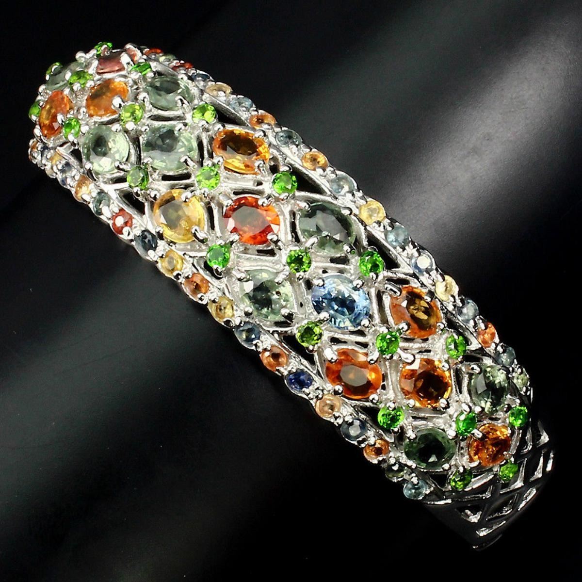 925 STERLING SILVER;PLATE14K WHITE GOLD;MAIN STONESAPPHIREOTHER GEMSCHROME DIOPSIDETOTAL WEIGHT125.10 CT (TOTAL WEIGHT OF SILVER + STONE)DIMENSION* STONE 2.0 TO 5.0 X 4.0 MM. * DIAMETER 2.1 X 2.0 INCHES. * FACE BANGLE 60.0 X 17.0 MM.MAIN STONE SHAPEOVAL CUTMAIN STONE COLORMULTI-COLORCLARITY/GRADEIF TO VVSLUSTERATTRACTIVETREATMENTHEATEDORIGINSONGEA - AFRICAHARDNESS9.0