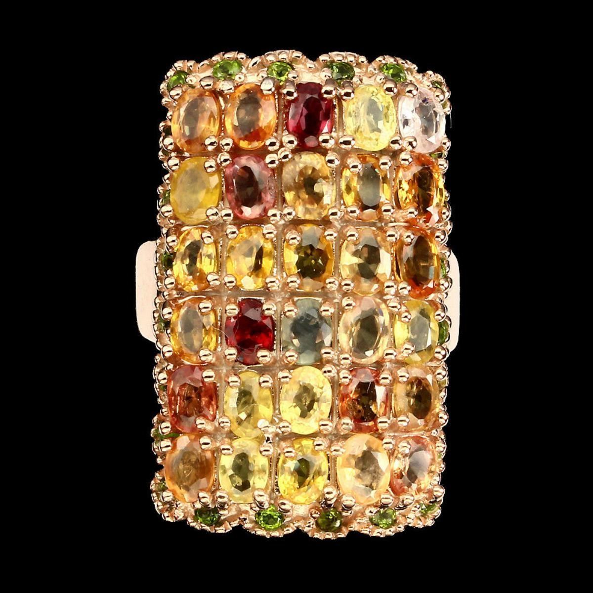 925 STERLING SILVERPLATE14K ROSE GOLDRING SIZE....8.5(resizeable)MAIN STONESAPPHIREOTHER GEMSCHROME DIOPSIDETOTAL WEIGHT58.53 CT (TOTAL WEIGHT OF SILVER + STONE)DIMENSION* STONE 2.0 TO 4.0 X 3.0 MM. * RING SIZE 8.5 * FACE RING 30.0 X 19.0 MM.MAIN STONE SHAPEOVAL CUTMAIN STONE COLORMULTI-COLORCLARITY/GRADEIF TO VVSLUSTERSUBLIMETREATMENTHEATEDORIGINSONGEA - AFRICAHARDNESS9.0