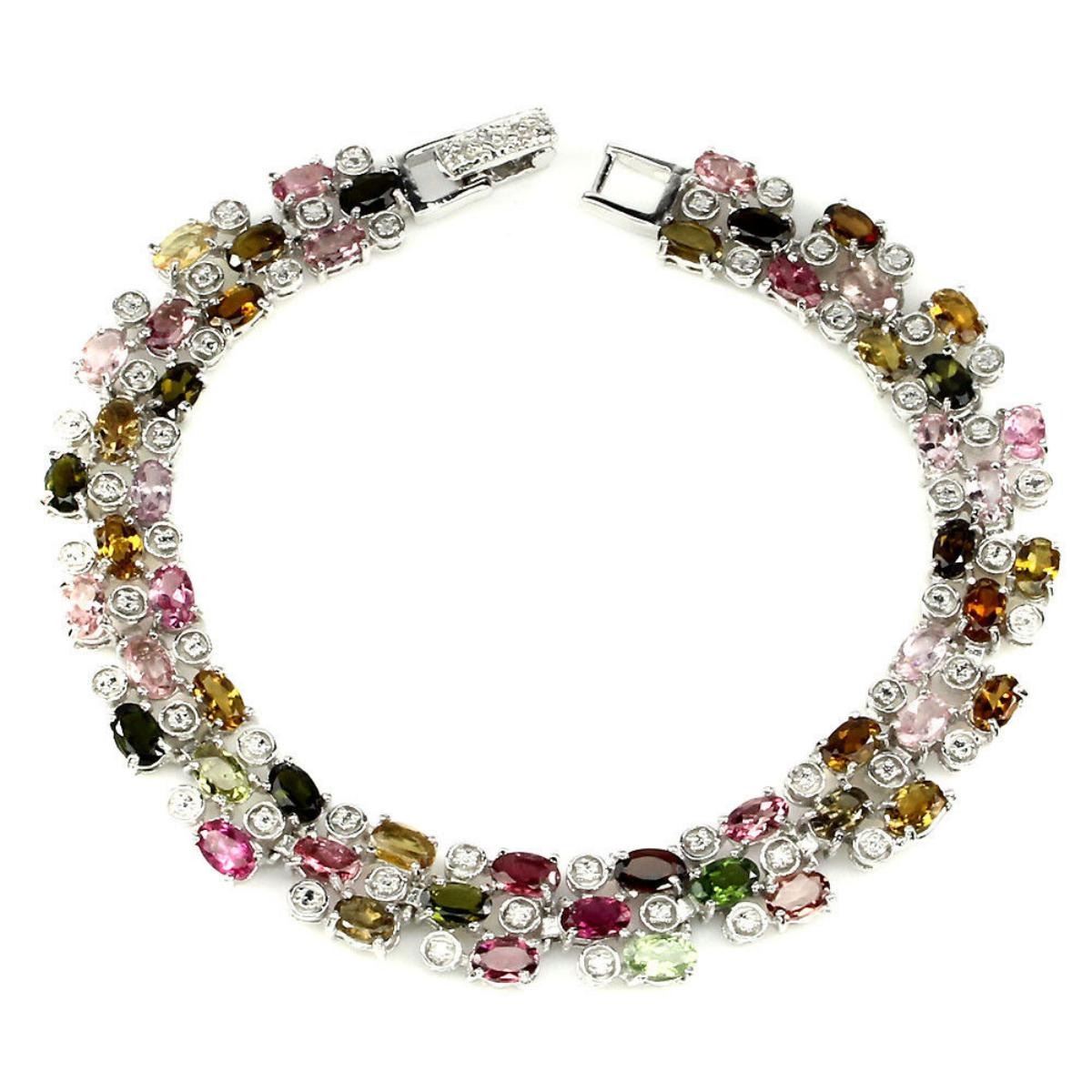 925 STERLING SILVER;; PLATE -14K WHITE GOLD; LENGTH (INCHES) 8; MAIN STONE -TOURMALINE; TOTAL WEIGHT -76.04 CT (TOTAL WEIGHT OF SILVER + STONE) DIMENSION * STONE 5.0 X 3.0 MM. * FACE BRACELET 180.0 X 10.0 MM. MAIN STONE SHAPE -OVAL CUT; MAIN STONE COLOR -MULTI-COLOR; CLARITY/GRADE -IF TO VVS; LUSTER -GRACEFULLY; TREATMENT -UNHEATED; ORIGIN -BRAZIL; HARDNESS 7.0 - 7.5