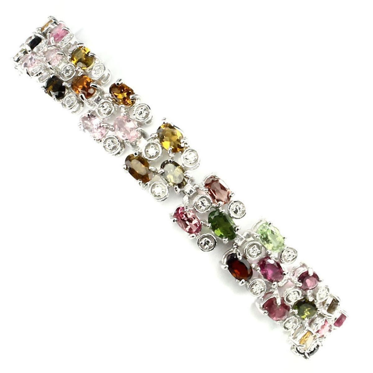 925 STERLING SILVER;; PLATE -14K WHITE GOLD; LENGTH (INCHES) 8; MAIN STONE -TOURMALINE; TOTAL WEIGHT -76.04 CT (TOTAL WEIGHT OF SILVER + STONE) DIMENSION * STONE 5.0 X 3.0 MM. * FACE BRACELET 180.0 X 10.0 MM. MAIN STONE SHAPE -OVAL CUT; MAIN STONE COLOR -MULTI-COLOR; CLARITY/GRADE -IF TO VVS; LUSTER -GRACEFULLY; TREATMENT -UNHEATED; ORIGIN -BRAZIL; HARDNESS 7.0 - 7.5