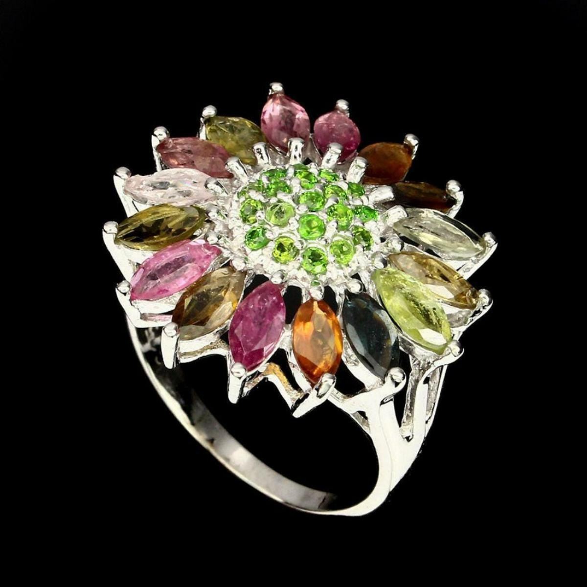 925 STERLING SILVER;PLATE14K WHITE GOLD;RING SIZE/LENGTH 9.5 (resizeable);MAIN STONETOURMALINEOTHER GEMSCHROME DIOPSIDETOTAL WEIGHT23.79 CT (TOTAL WEIGHT OF SILVER + STONE)DIMENSION* STONE 1.5 TO 6.0 X 3.0 MM. * FACE RING 23.0 X 22.0 MM.MAIN STONE SHAPEMARQUISE CUTMAIN STONE COLORTOP FANCY COLORSCLARITY/GRADEIF TO VVSLUSTERELEGANTTREATMENTUNHEATEDORIGINBRAZILHARDNESS7.0 - 7.5