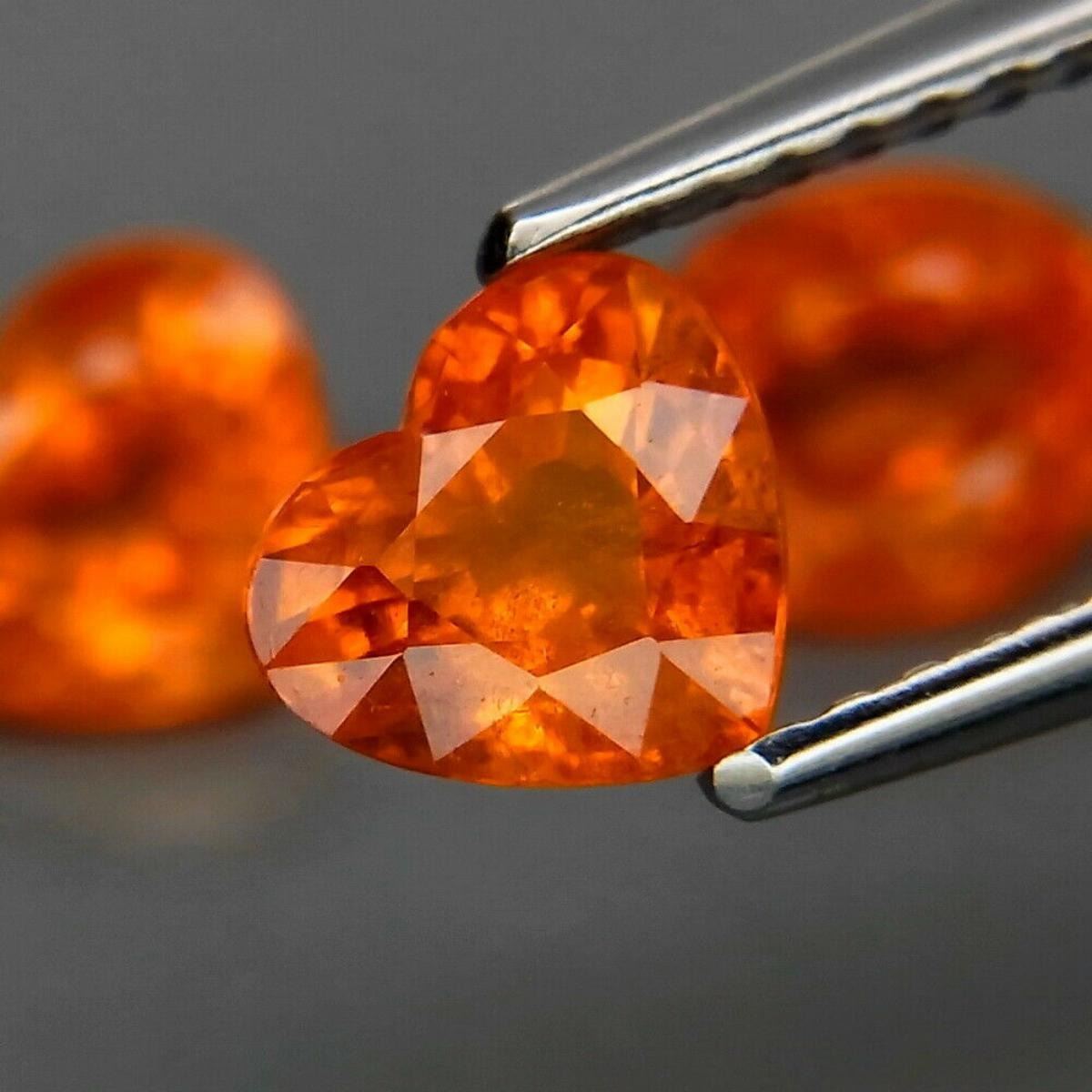 Spessartite Garnet SHAPE Oval, Heart Shape; WEIGHT 3.06 Ct.SIZE 6 X 5 mm; QUANTITY 3 Pieces; COLOR Fanta Orange; LUSTER Superior; ORIGIN Namibia; TREATMENT None HARDNESS 7-7.5