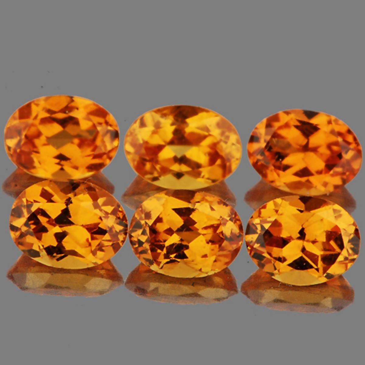 Natural Spessartite Garnet..... WEIGHT : 1.23 cts; SHAPE : Oval SIZE ( L x W x D ) : 4.00 x 3.00 mm QUANTITY : 6 pieces ( Perfectly Matched Set ) COLOR : Fanta Orange BEST AAA Color; CLARITY : IF-VVS1; ORIGIN : Nigeria; HARDNESS : 7; LUSTER : Excellent!!! TREATMENT : 100% Natural Unheated