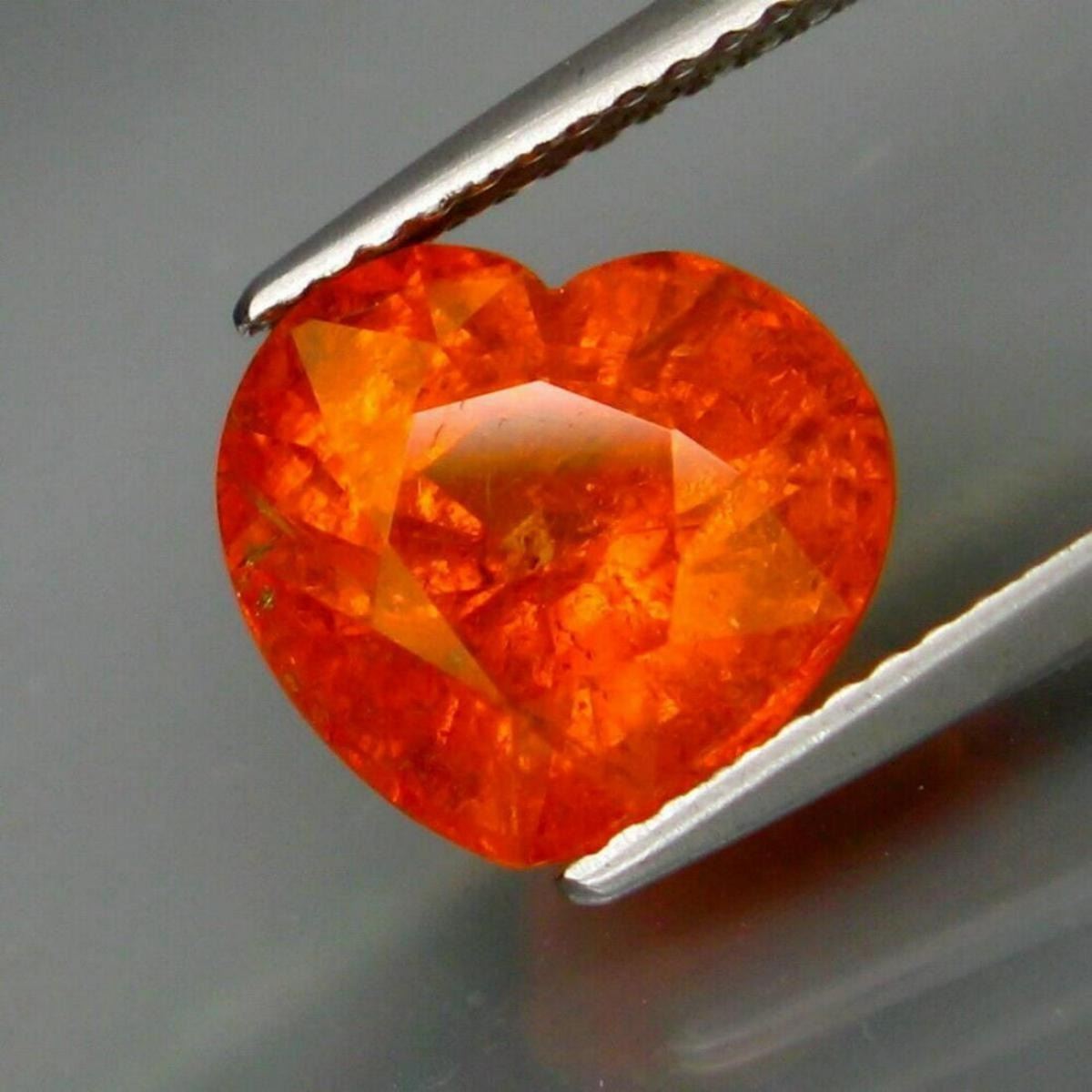 Spessartite Garnet SHAPE Heart Shape WEIGHT 5.32 Ct.SIZE 10.5 X 9.5 X 6.9 mm QUANTITY 1 Piece COLOR Fanta Orange CLARITY SI ; ORIGIN Namibia; TREATMENT None; HARDNESS 7-7.5