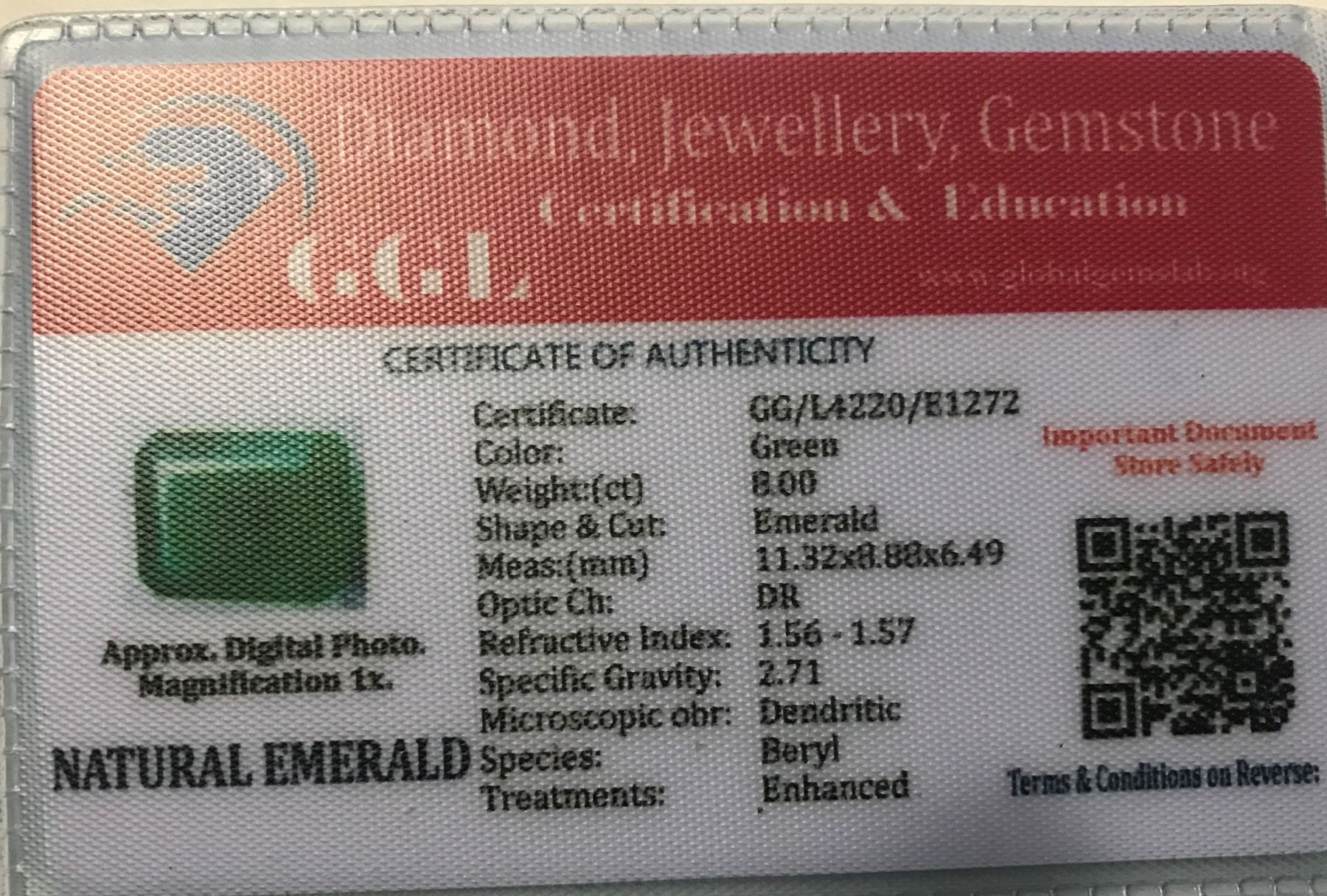 Country of Origin:Zambia;Gemstone:Emerald;Natural earth mined :NaturalColor:Forest Green;Depth:6.19;Length:11.48 MM;Treatment:Enhanced;Width:7.98 MM; Total Carat Weight (TCW):7.48 Ct