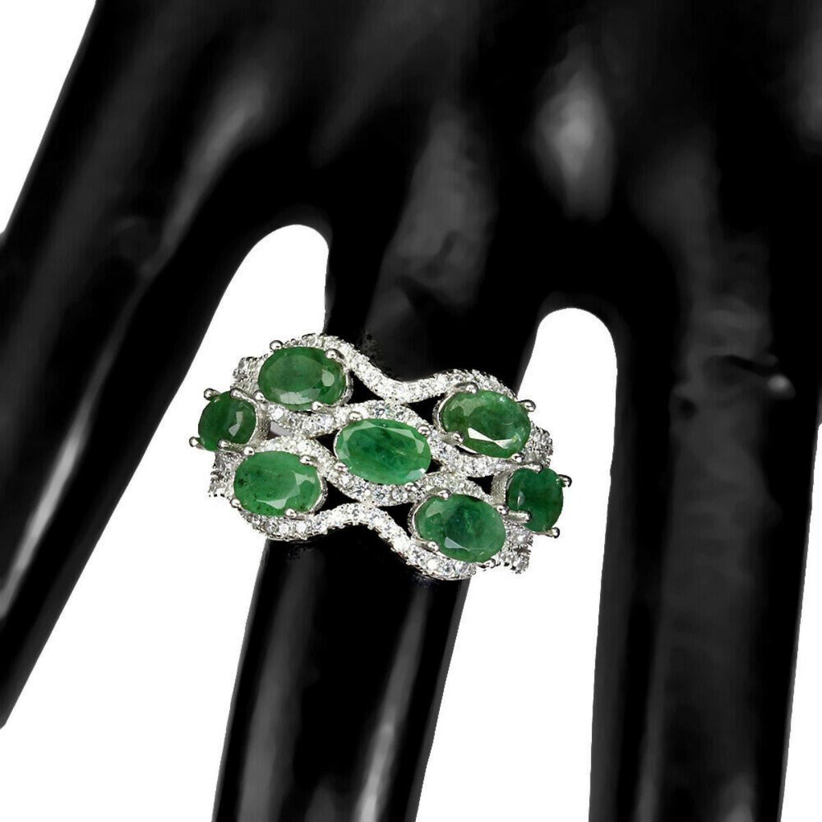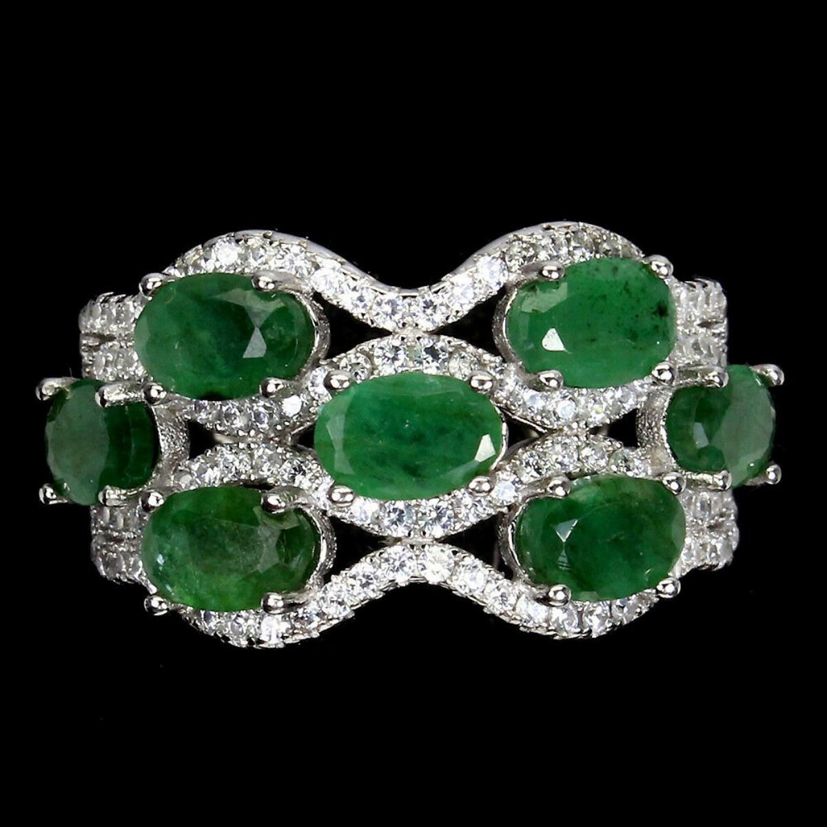 925 STERLING SILVER;PLATE-14K WHITE GOLD;RING SIZE(resizeable)8.5;MAIN STONE-EMERALD;TOTAL WEIGHT-4.95 GRAM (TOTAL WEIGHT OF SILVER + STONE)DIMENSION-* STONE 6.0 X 4.0 MM. * CZ 1.0 MM. * RING SIZE 8.5 * FACE RING- 24.0 X 14.0 MM.;MAIN STONE SHAPE-OVAL CUT;MAIN STONE COLOR-TOP RICH GREEN;TREATMENT-UNHEATED;ORIGIN-zambiaHARDNESS-7.5 - 8.0